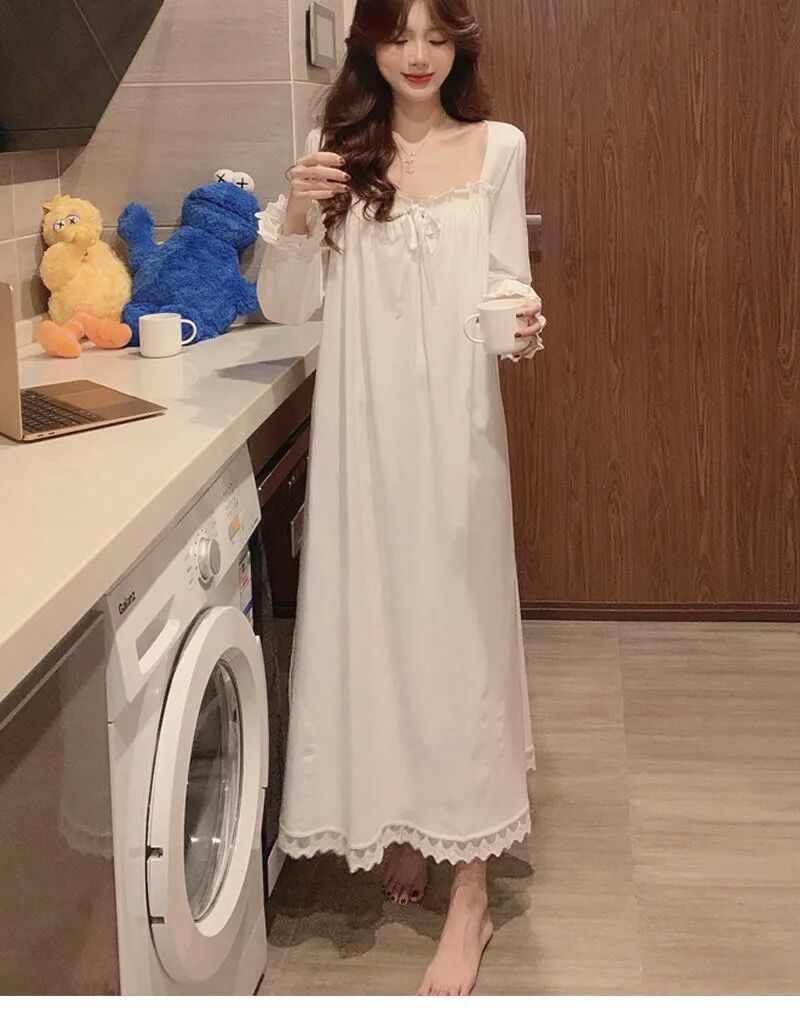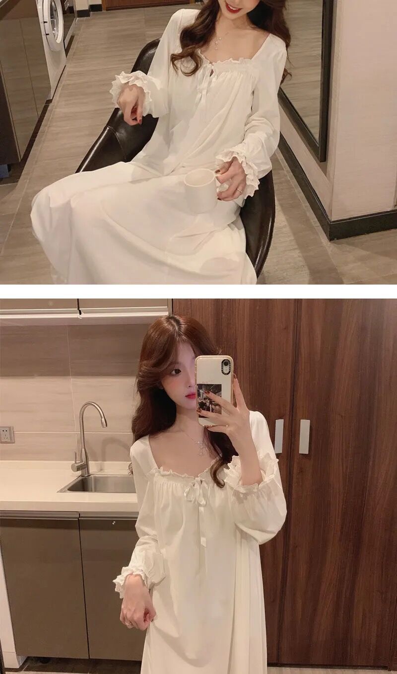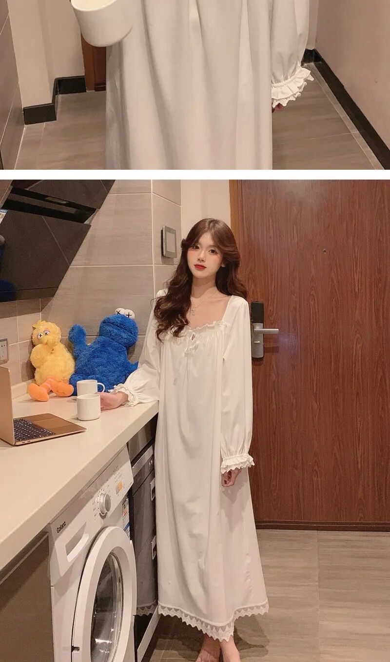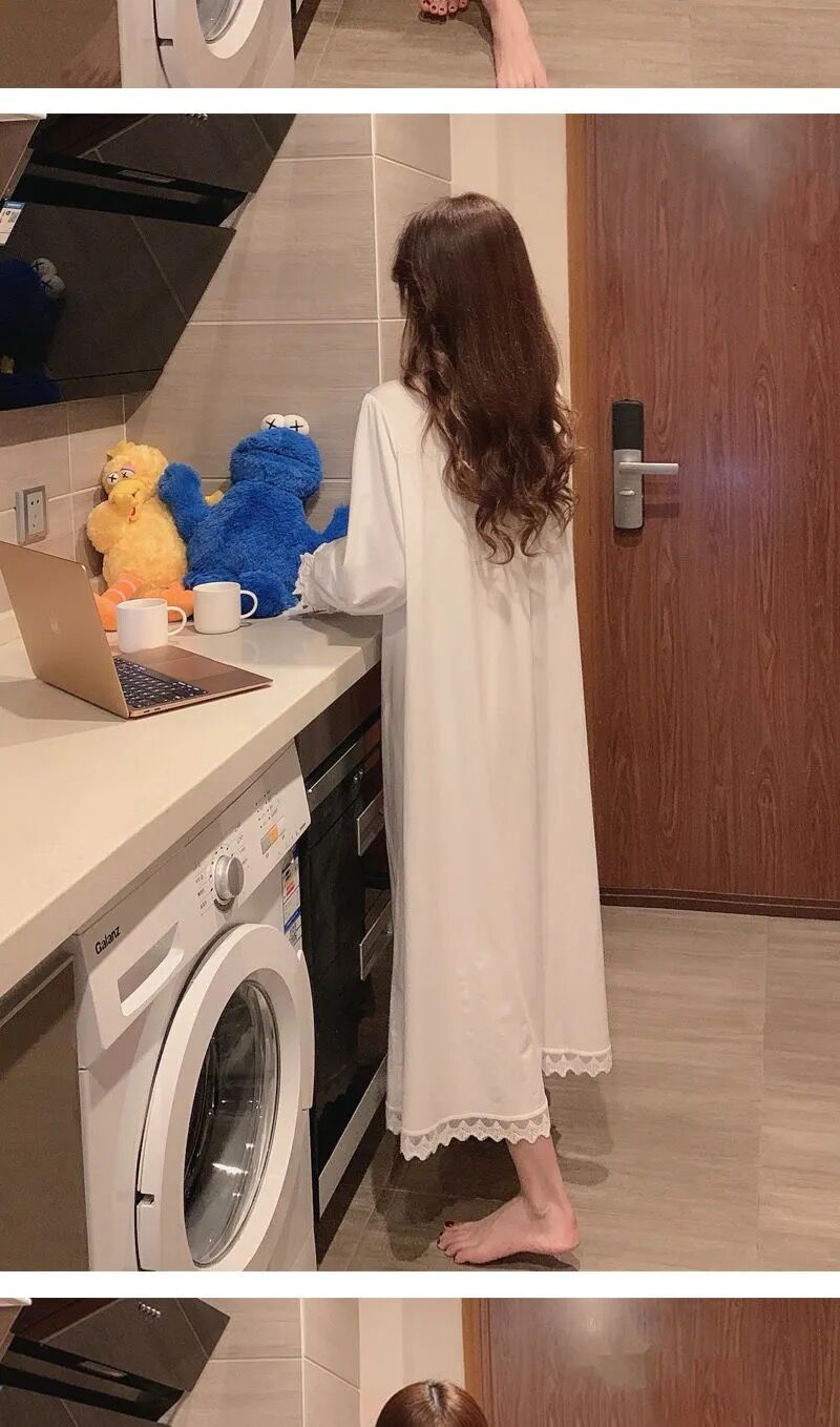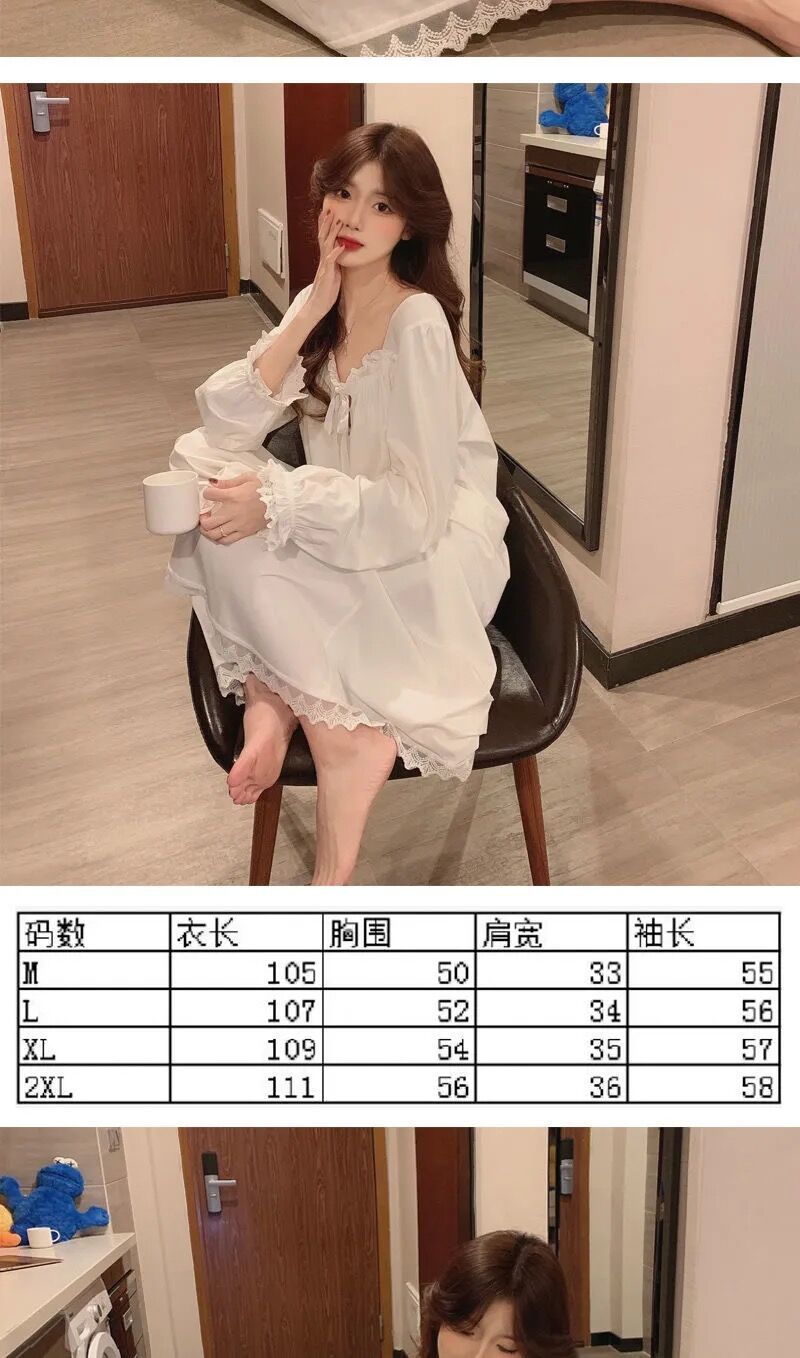 여성을위한 궁전 스타일 긴팔 잠옷 여름 레이스 귀여운 한국 스타일 홈웨어 롱 스커트 마이크로 비즈니스 라이브 방송스토어 가기