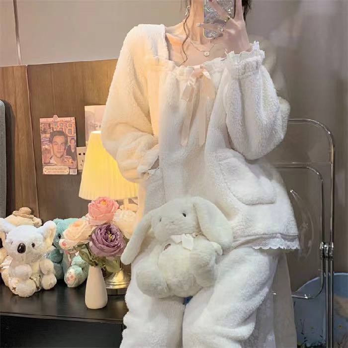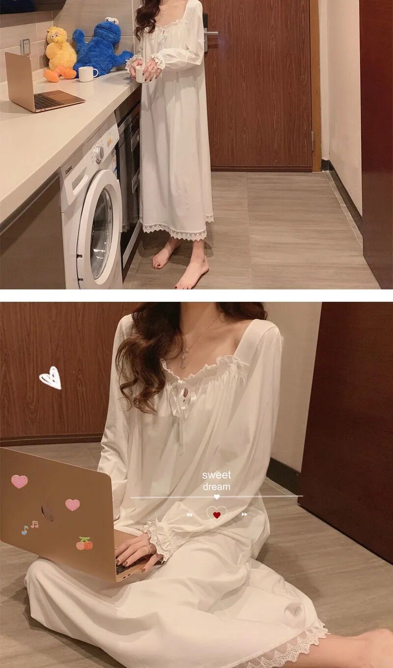 여성을위한 궁전 스타일 긴팔 잠옷 여름 레이스 귀여운 한국 스타일 홈웨어 롱 스커트 마이크로 비즈니스 라이브 방송