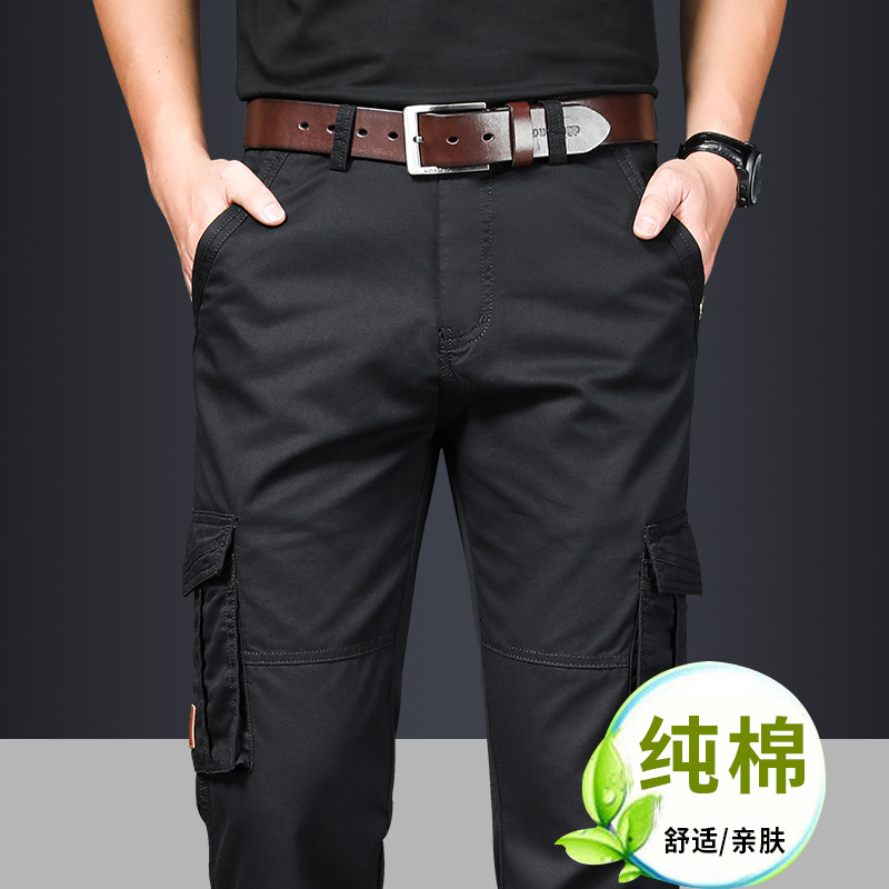 여름 얇은 순면 남자의 캐주얼 바지 남자의 멀티 포켓 작업복 야외 캐주얼 긴 바지 느슨한 플러스 사이즈 머리스토어 가기