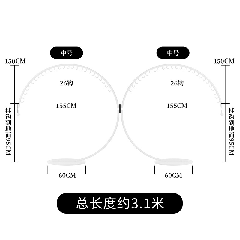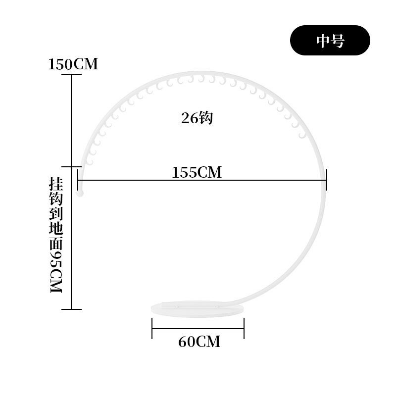 • 26 후크에 대해 중간 길이 155 높은 150 [흰색]