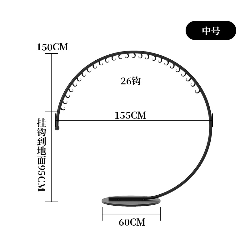 • 26 후크에 대해 중간 길이 155 높은 150 [검정]
