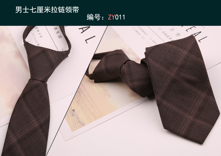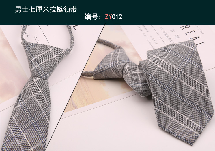 남자 7cm 넥타이 남자의 한국식 게으른 지퍼 이지 지퍼 비즈니스 웨어 격자 무늬 트렌디 한 세트 액세서리스토어 가기