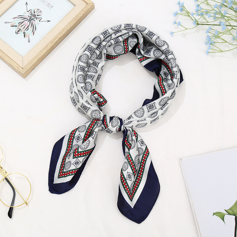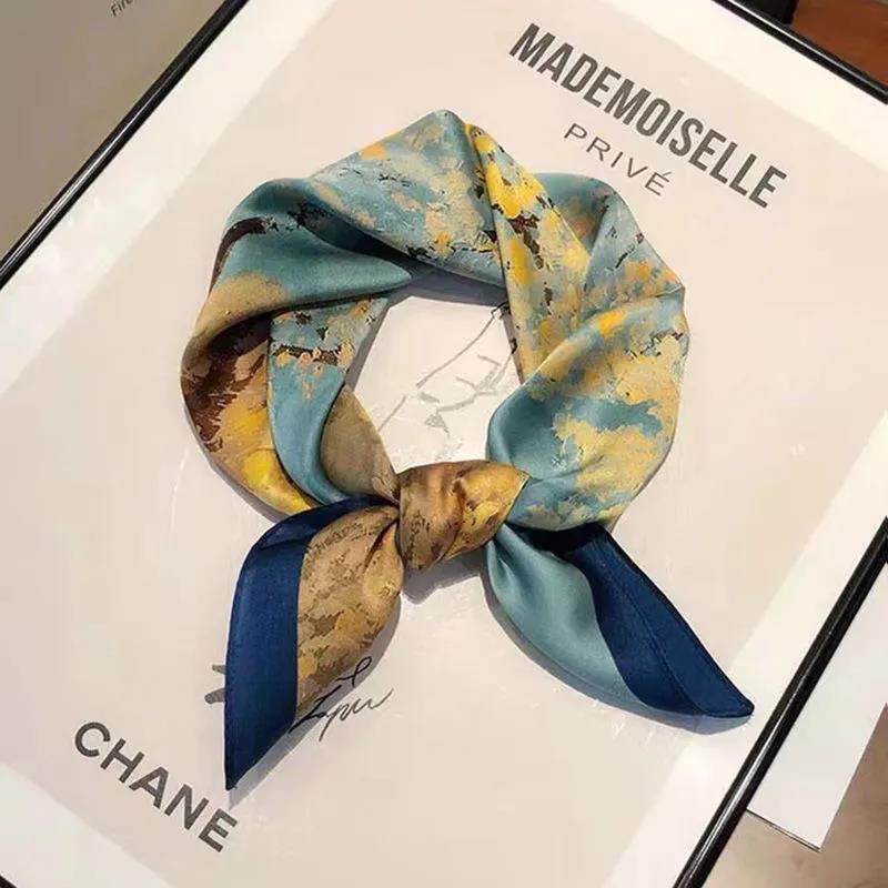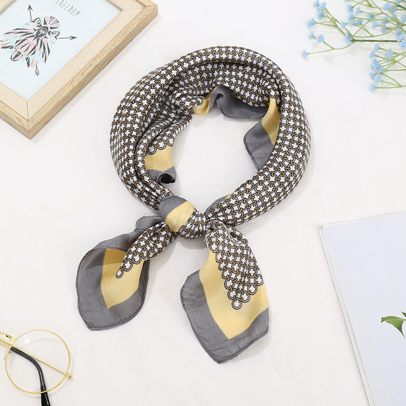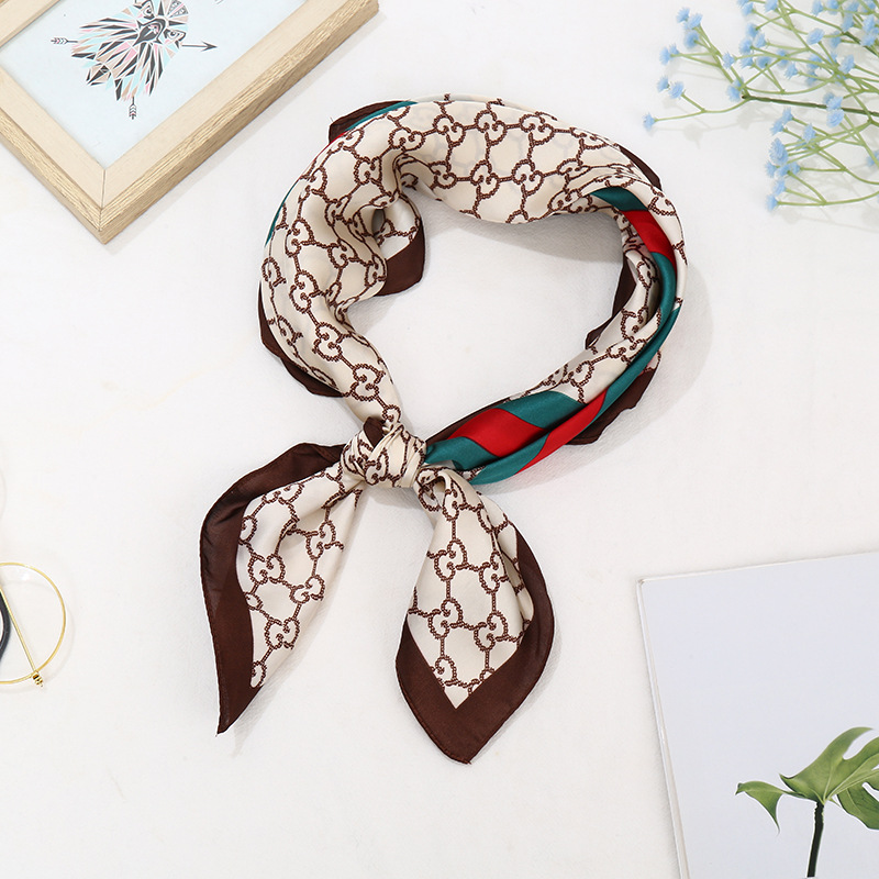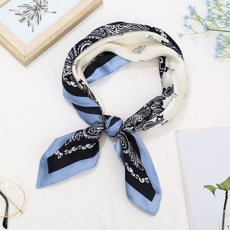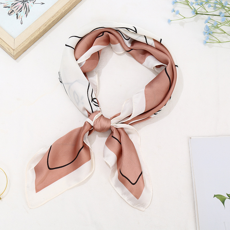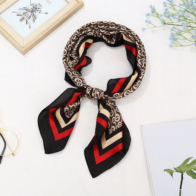 70*70 같은 스타일 스트라이프 실크 스카프 여성용 작은 사각형 스카프 한국식 다용도 전문 소형 스카프 여름 얇은 장식 스카프