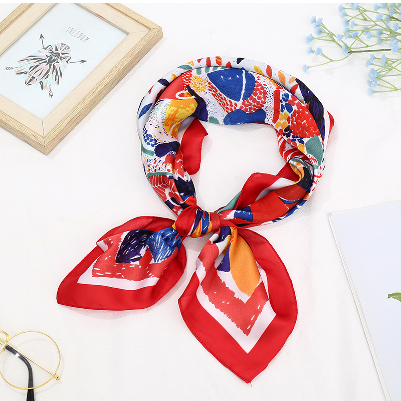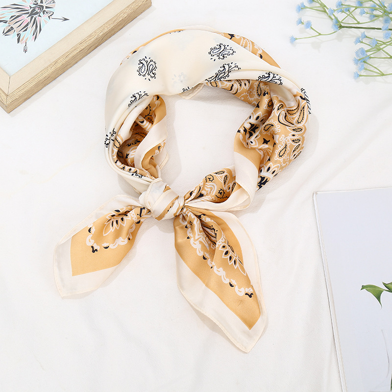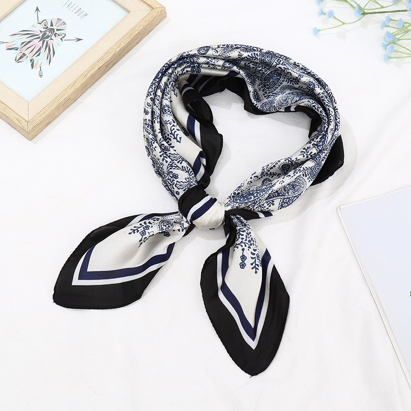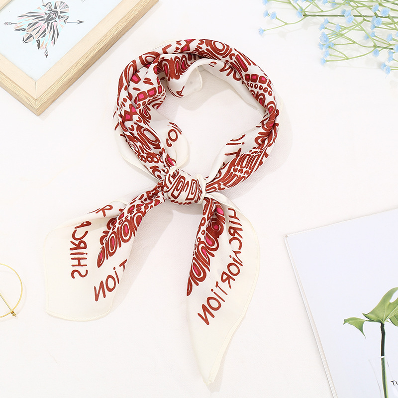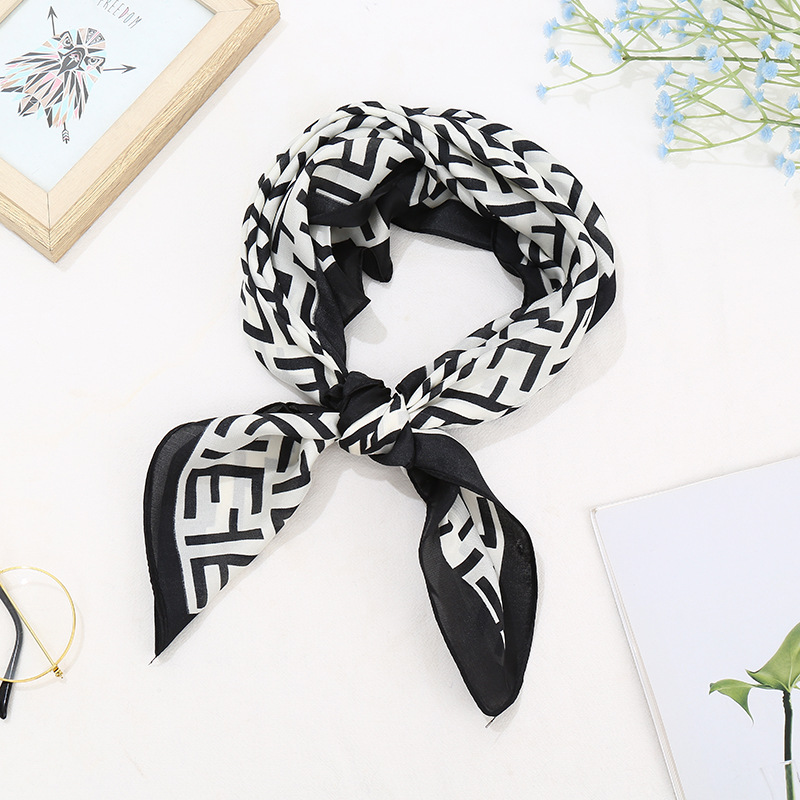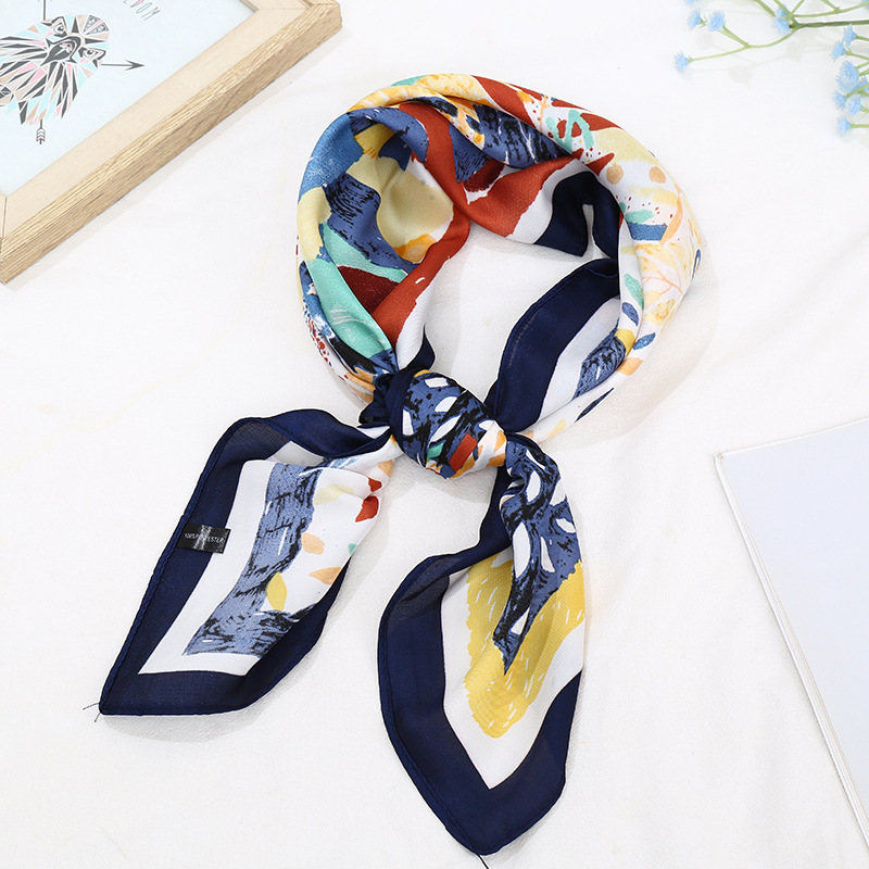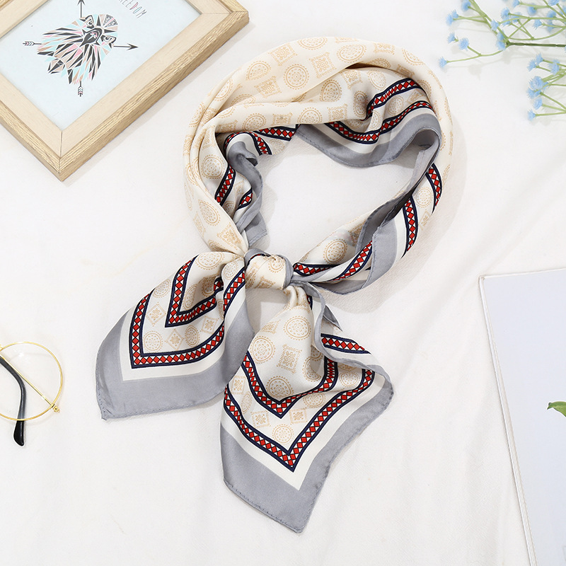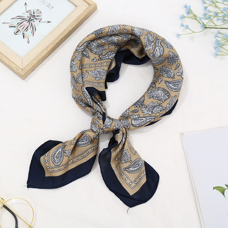 70*70 같은 스타일 스트라이프 실크 스카프 여성용 작은 사각형 스카프 한국식 다용도 전문 소형 스카프 여름 얇은 장식 스카프