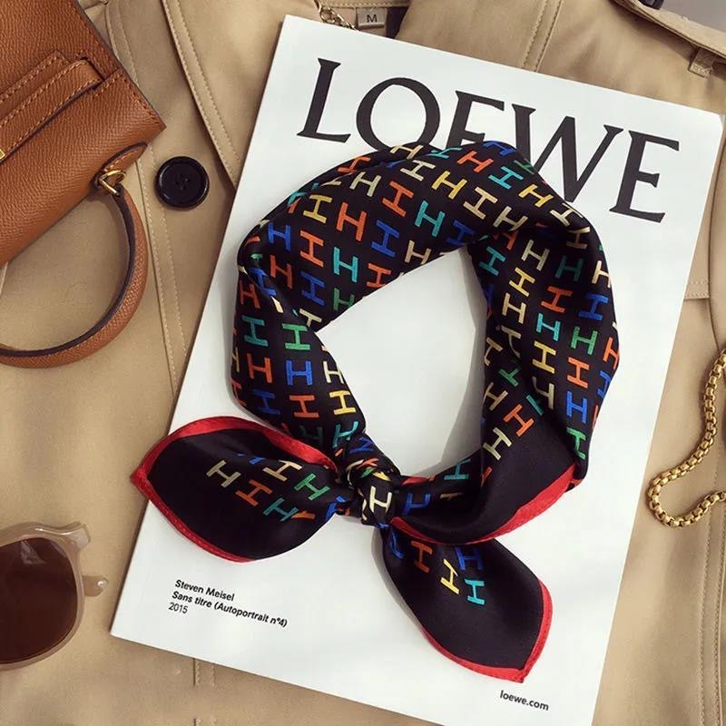 70*70 같은 스타일 스트라이프 실크 스카프 여성용 작은 사각형 스카프 한국식 다용도 전문 소형 스카프 여름 얇은 장식 스카프스토어 가기