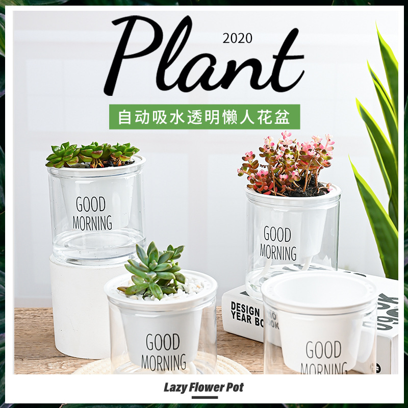 게으른 화분 자동 흡수성 냄비 투명한 둥근 플라스틱 수경 냄비 즙이 많은 화분 창조적 인 수지 좋은 아침 분지스토어 가기