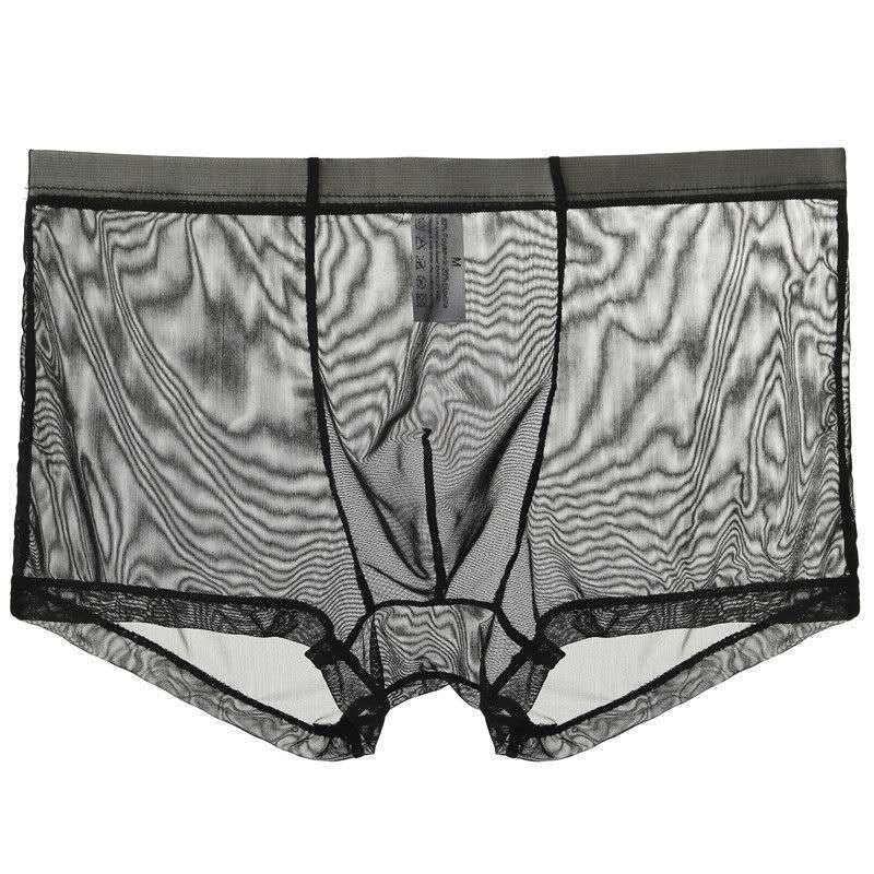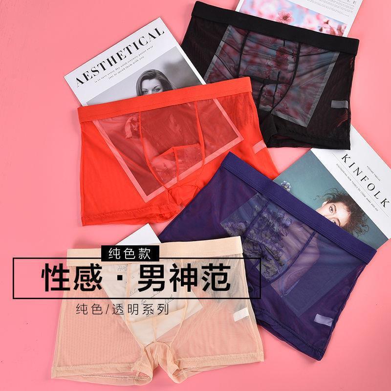 전체 투명 남자의 섹시한 복서 브리프 얇은 얼음 실크 메쉬 플러스 사이즈 4 코너 아이스 실크 인쇄 복서 반바지