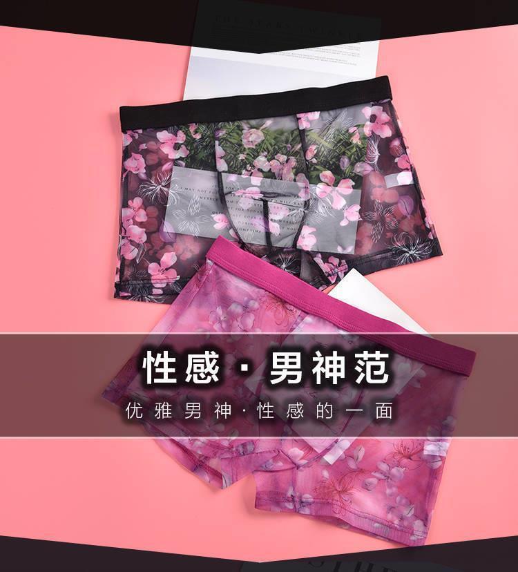 전체 투명 남자의 섹시한 복서 브리프 얇은 얼음 실크 메쉬 플러스 사이즈 4 코너 아이스 실크 인쇄 복서 반바지스토어 가기