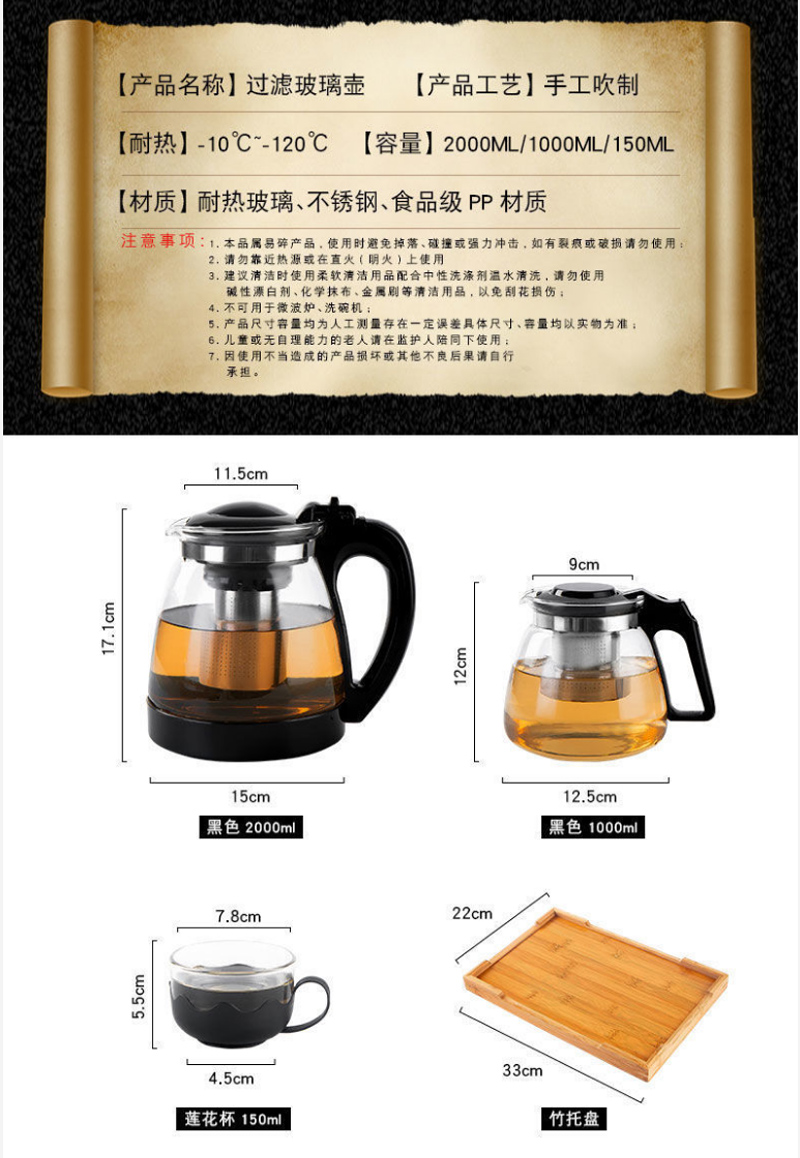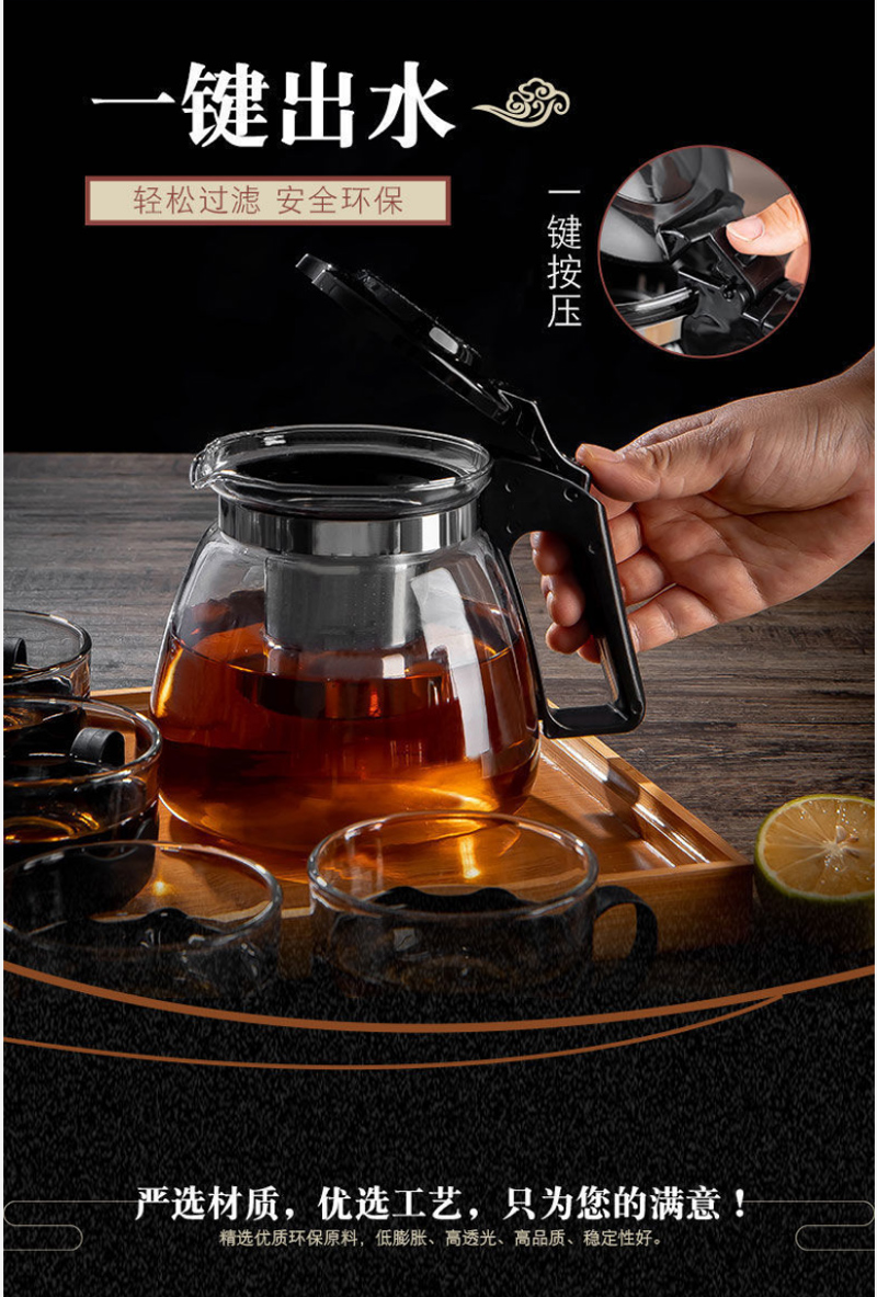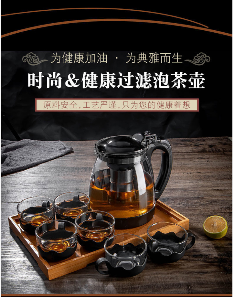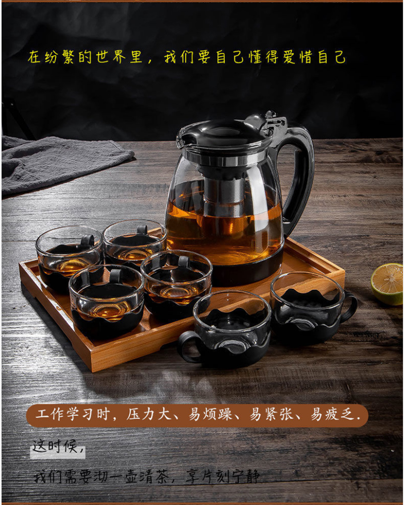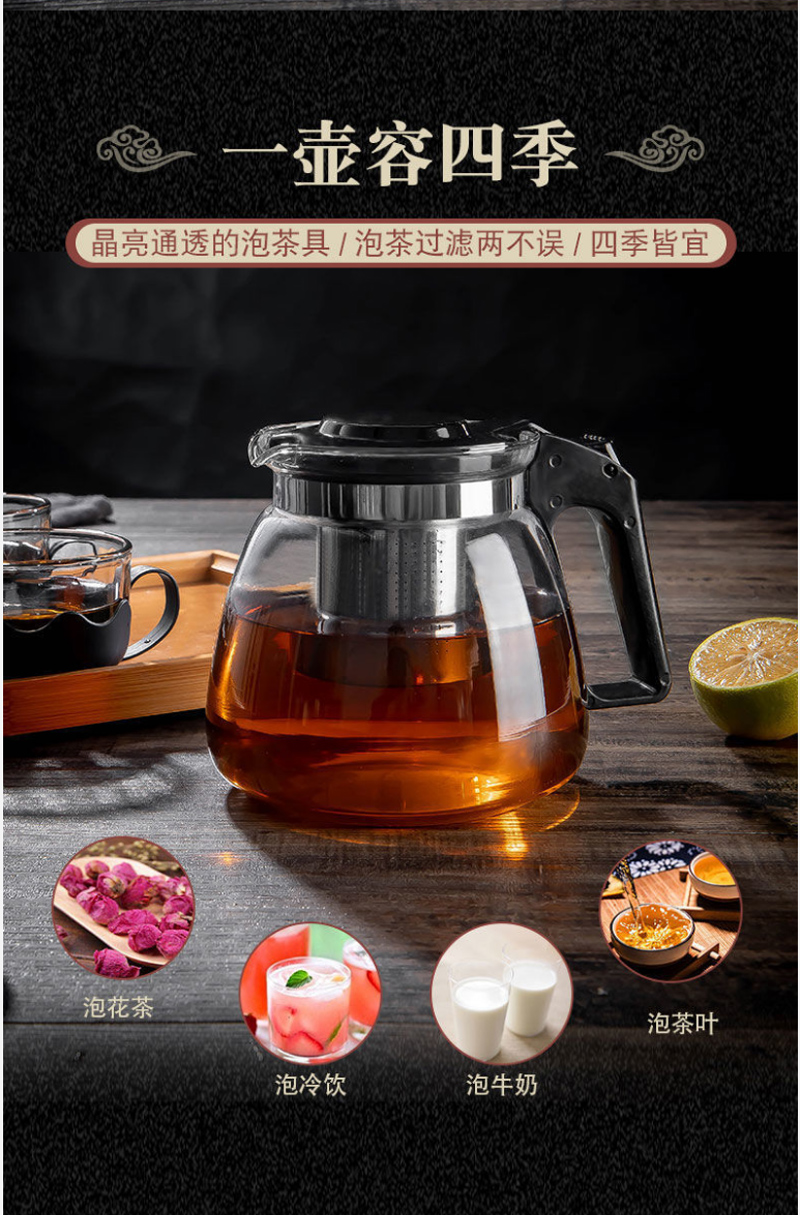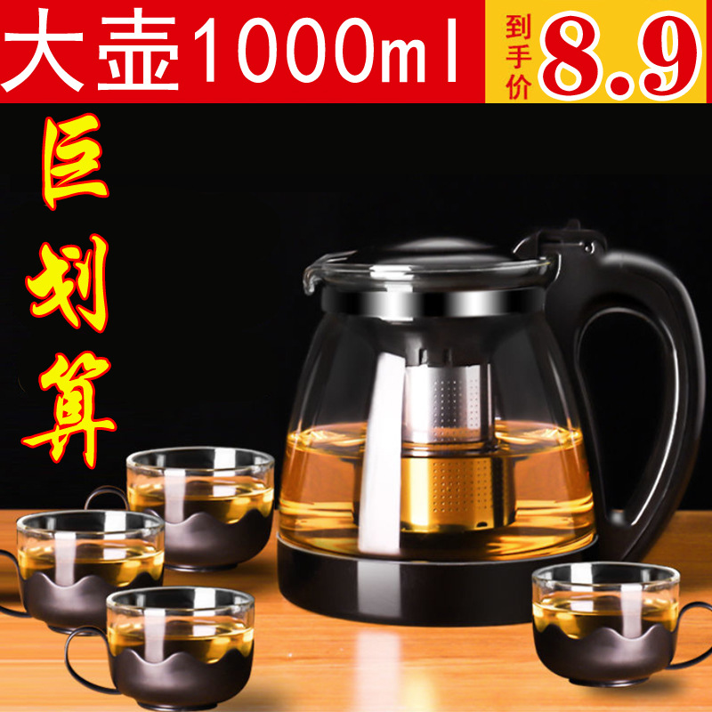 가정용 대용량 유리 주전자 세트 찻잔 여과기 고온 저항 주전자 차 주전자 차 세트 차스토어 가기