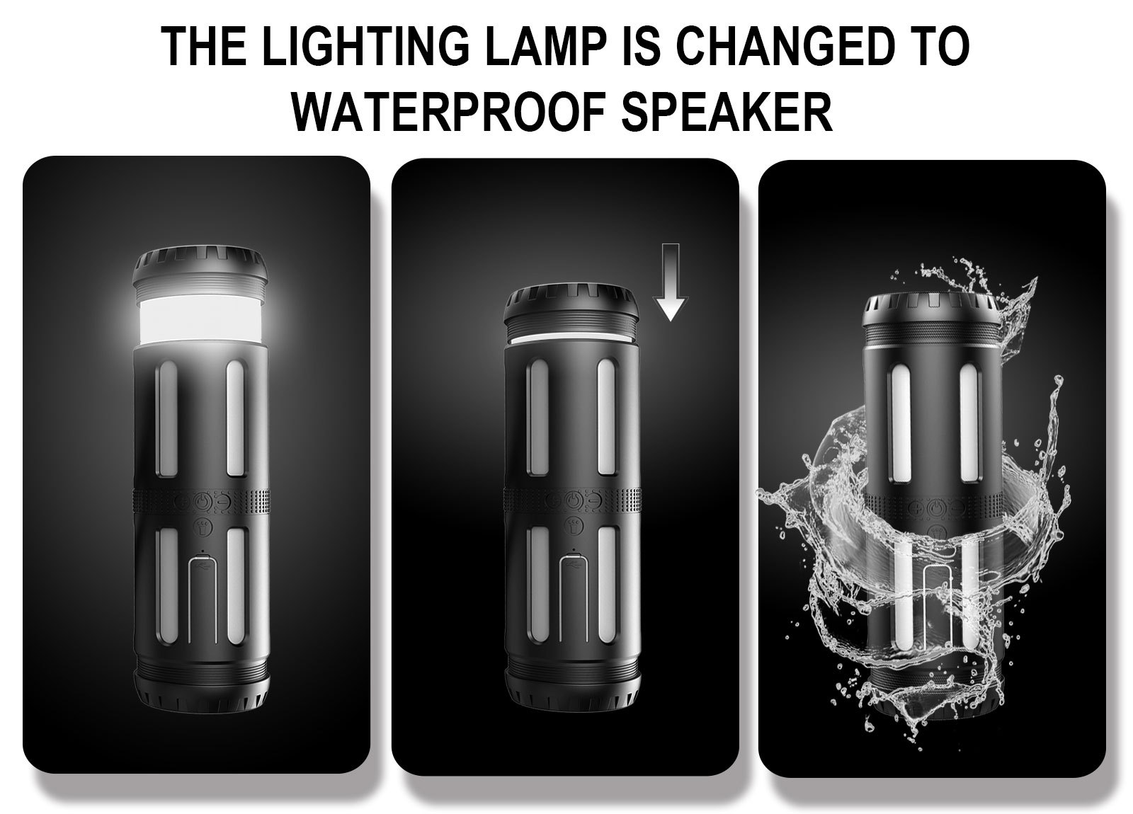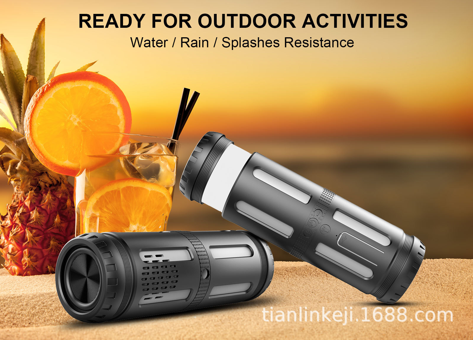 功能:IPX4+蓝牙5.2+免提通话+手电筒+露营灯小音箱+FM收音机