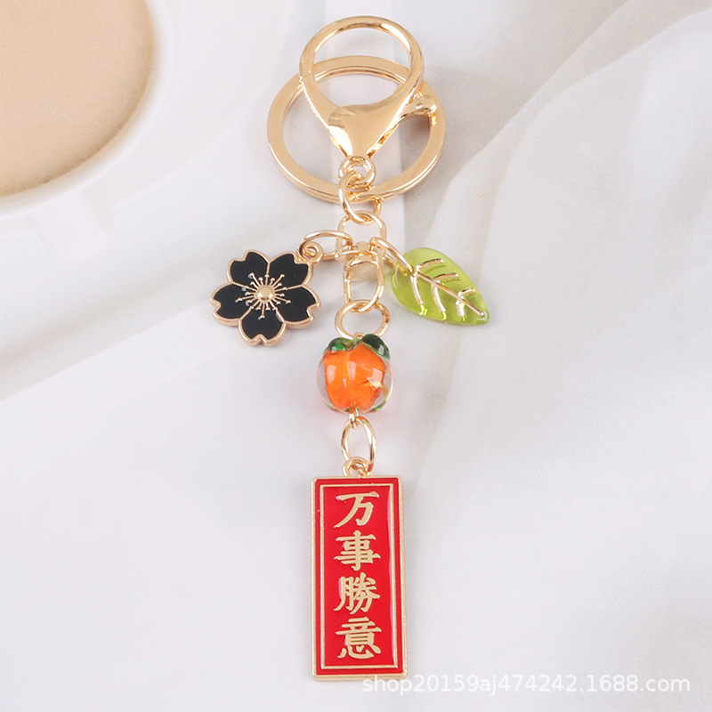 새로운 창조적 인 합금 열쇠 고리 귀여운 금속 꽃 시뮬레이션 감 키 펜던트 학생 여성 가방 장식