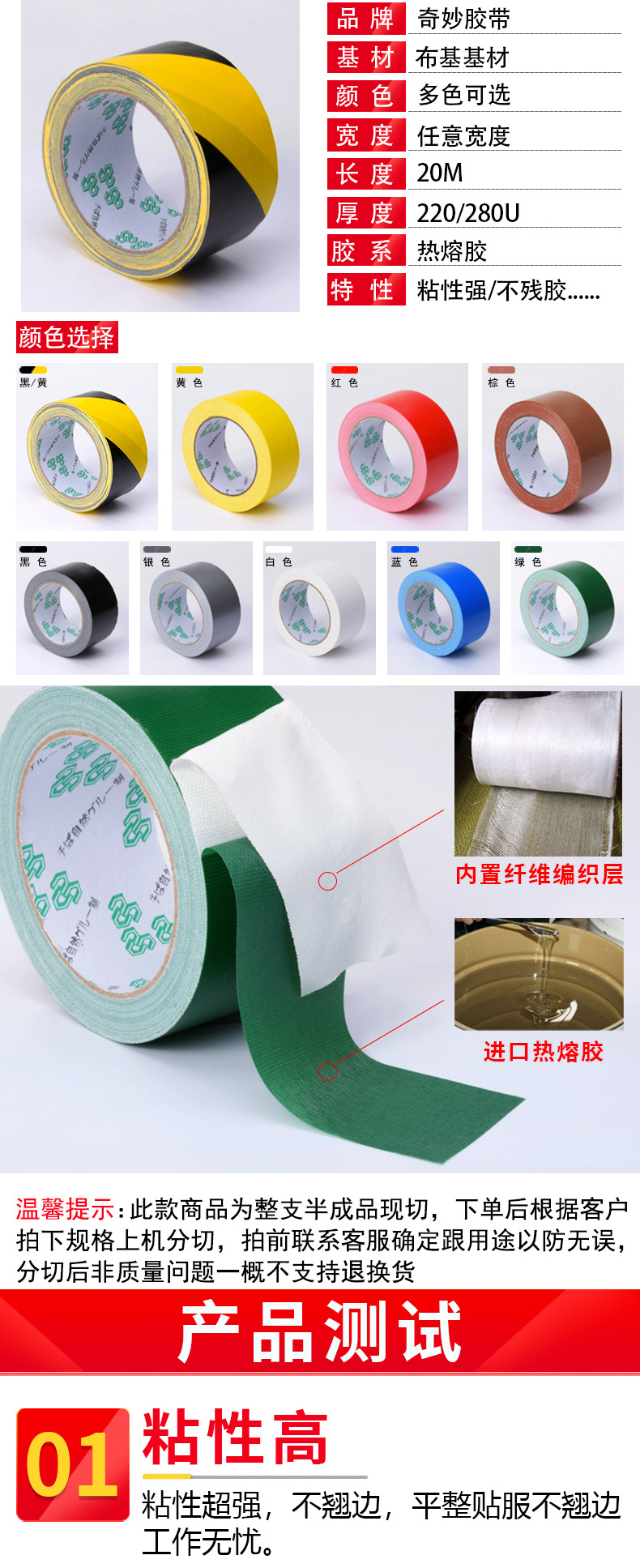 레드 옐로우 다크 브라운 옐로우 단면 강한 천베이스 테이프 장식 보호 필름 고정 원활한 컬러 테이프 도매