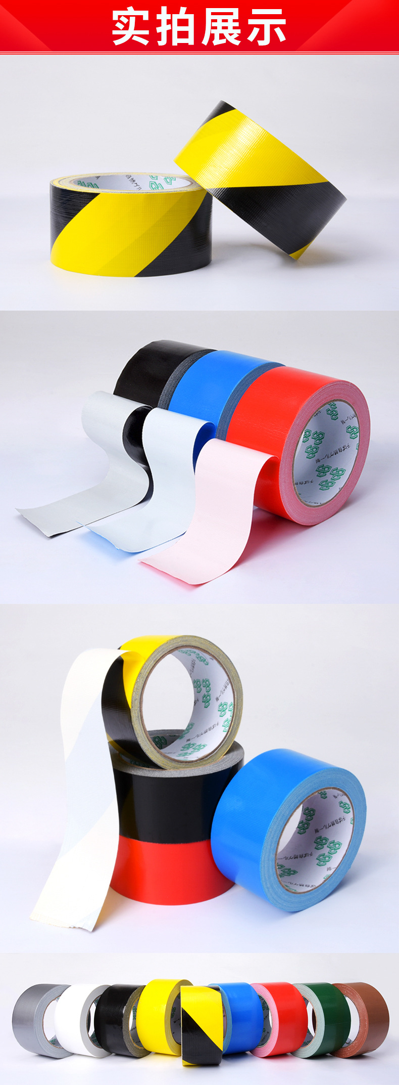 레드 옐로우 다크 브라운 옐로우 단면 강한 천베이스 테이프 장식 보호 필름 고정 원활한 컬러 테이프 도매스토어 가기