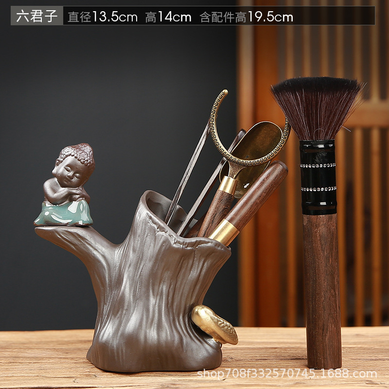 흑단 대나무 나무 다도 6 신사 세트 쿵푸 차 세트 액세서리 6 신사 차 메이커 차 홀더 숟가락 칼 펜 도로