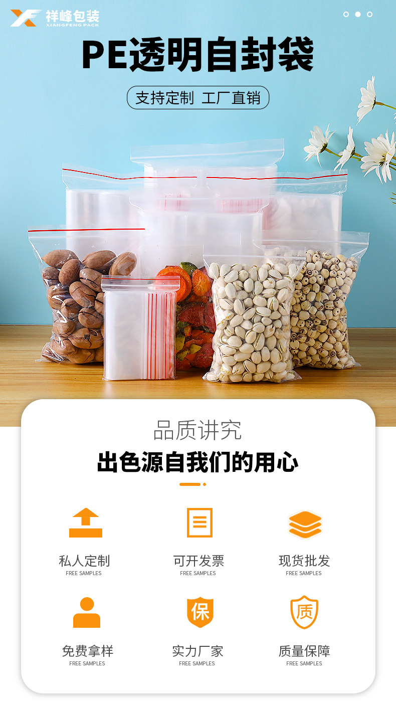재고 두꺼운 Pe 자체 밀봉 가방 투명한 대형 식품 플라스틱 포켓 산화 방지 밀봉 가방 보석 포장 가방스토어 가기