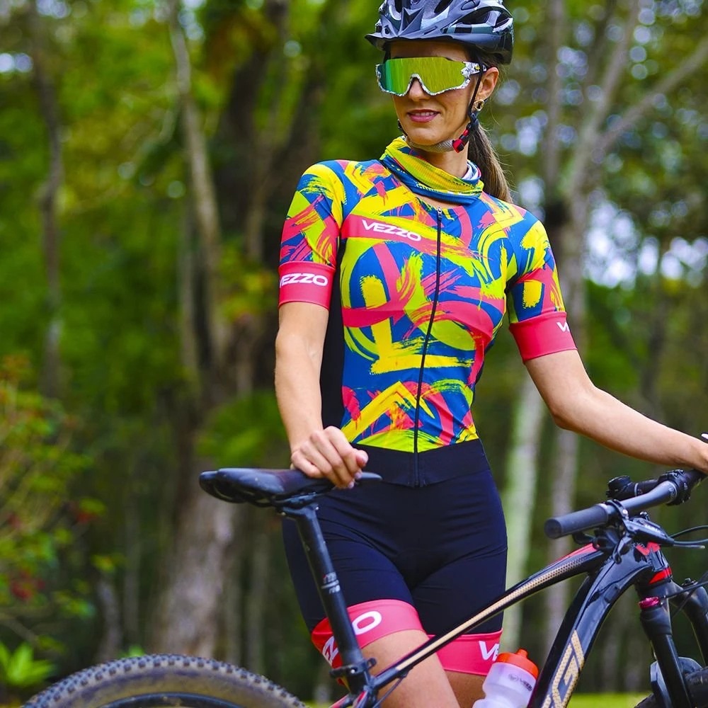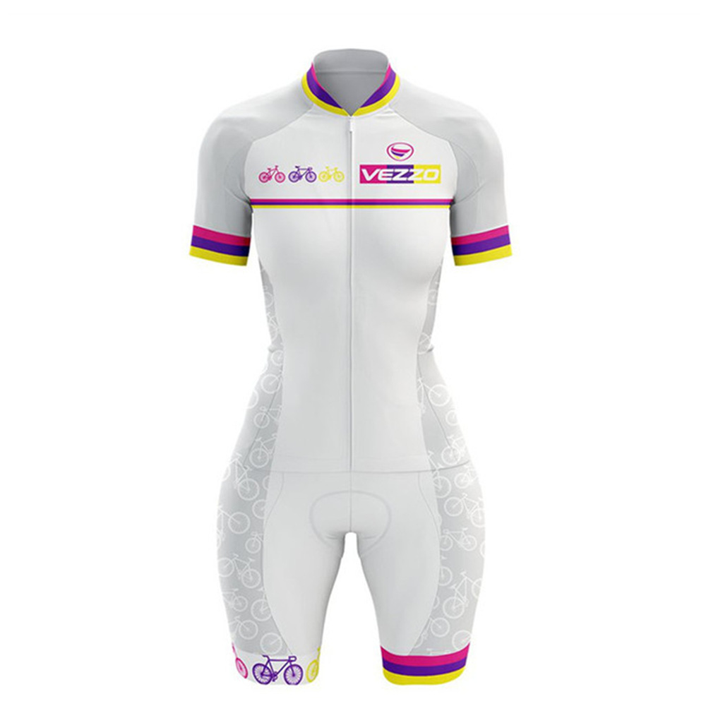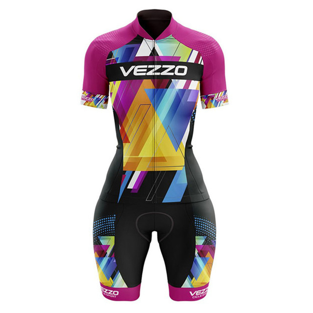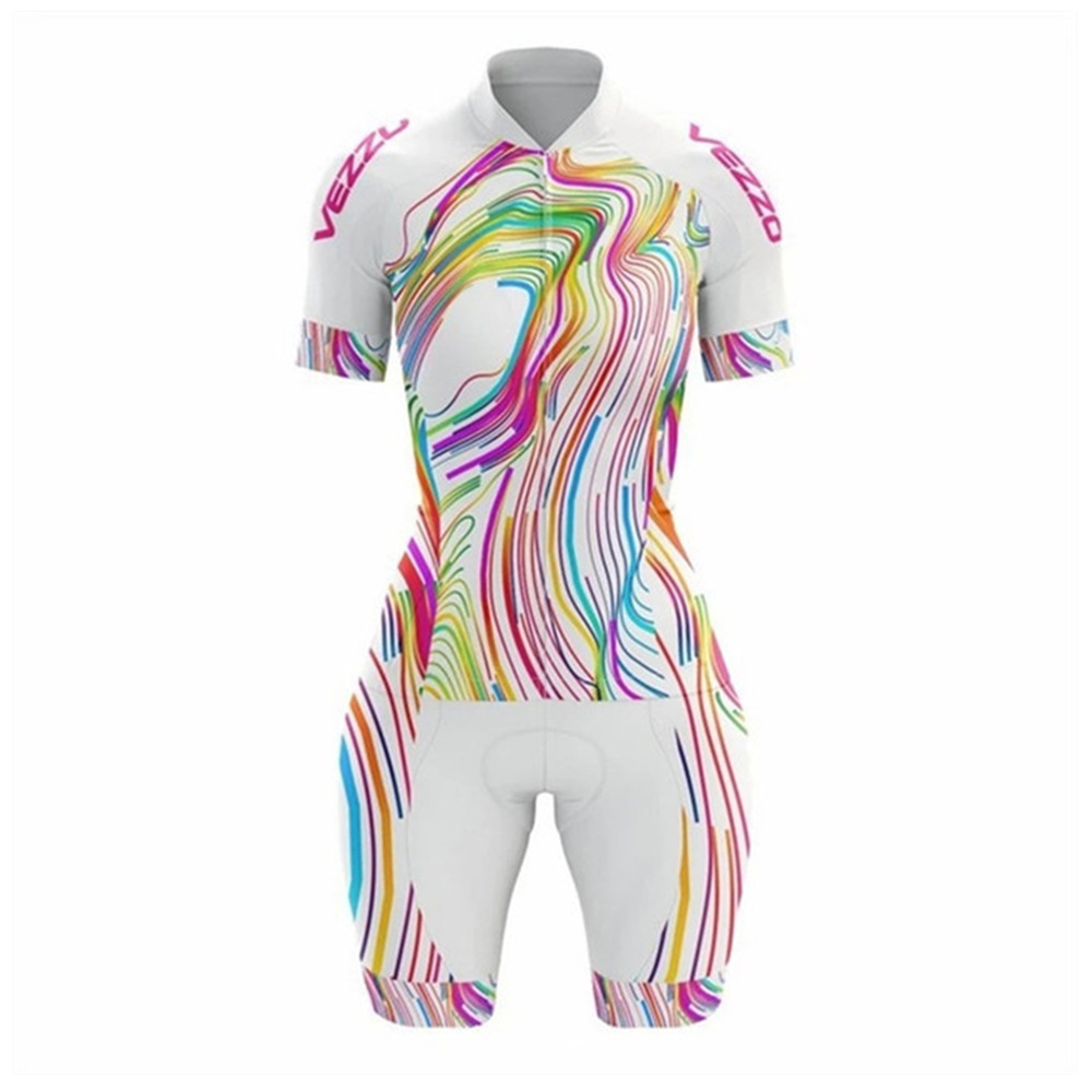 VEZZO 여름 반팔 남성과 여성의 철인 3 종 경기 점프 슈트 컬러 패턴 사이클링 세트 사이클링 세트스토어 가기