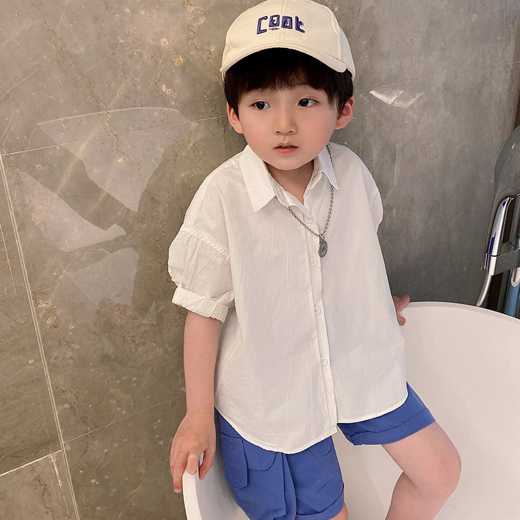 반팔 셔츠 아동복 22 여름 소년 큰 아이들의 느슨한 반팔 셔츠의 한국어 버전 타이드 팬 카디건 머리카락 세대