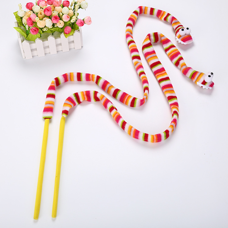 애완 동물 고양이 장난감 무지개 색 만화 뱀 고양이 스틱 고양이 스틱 크로스 국경 공장 재고 도매 애완 동물 용품