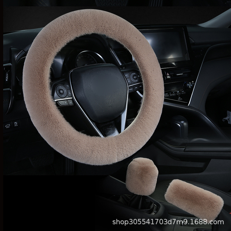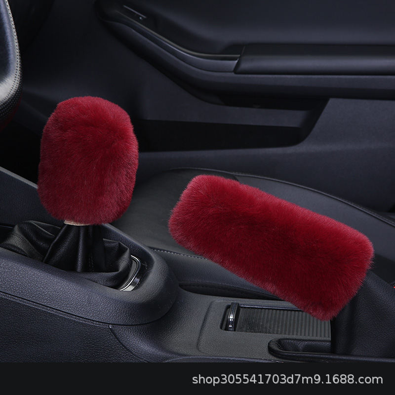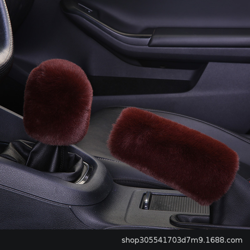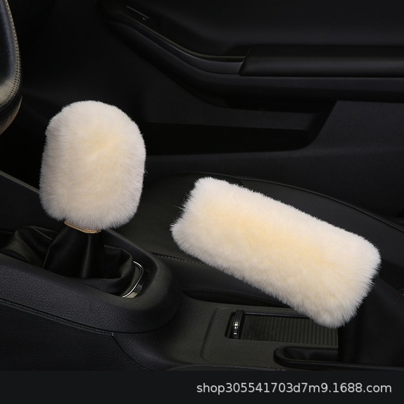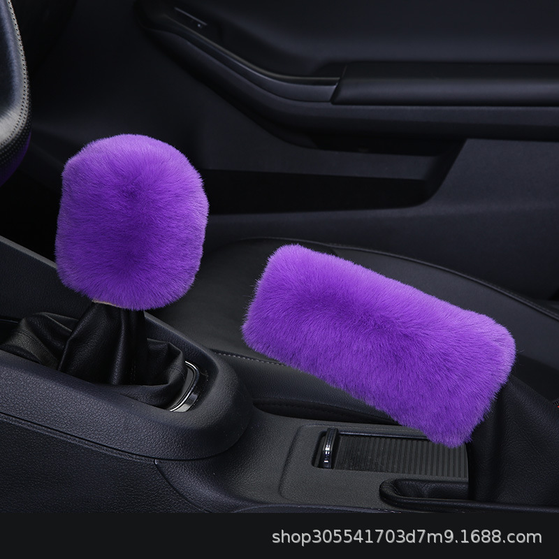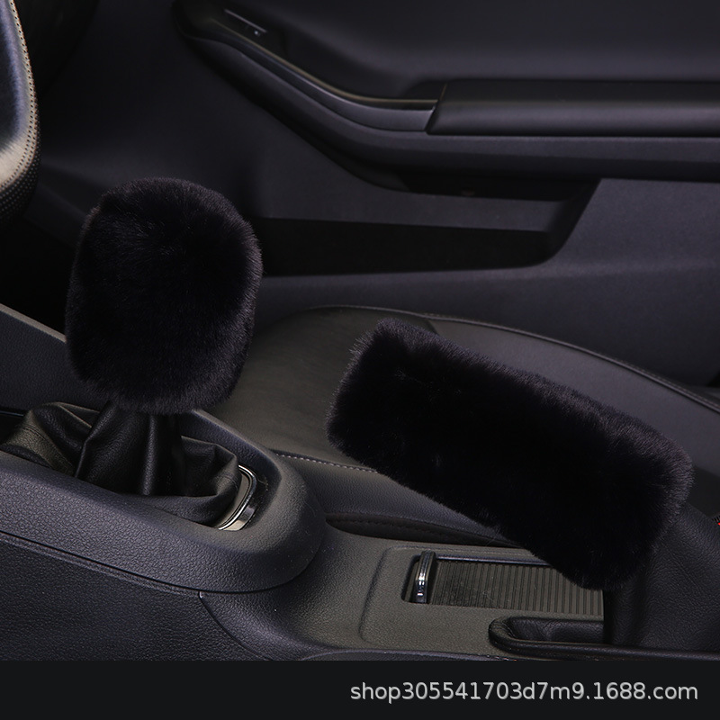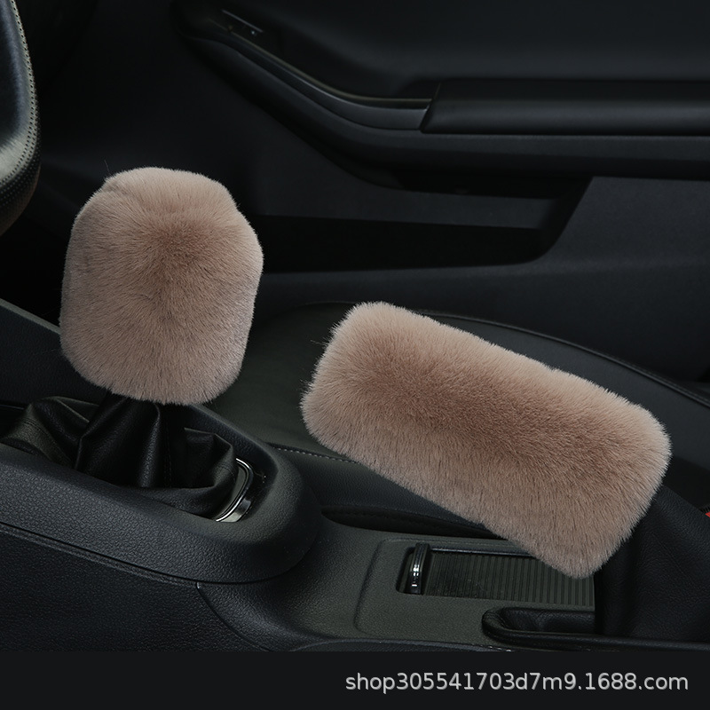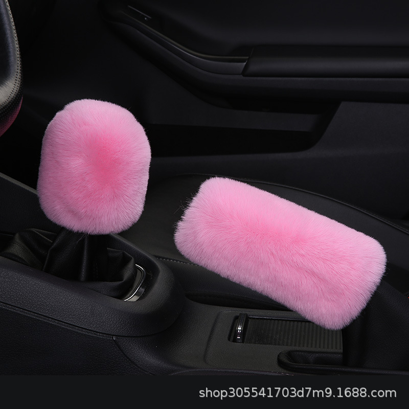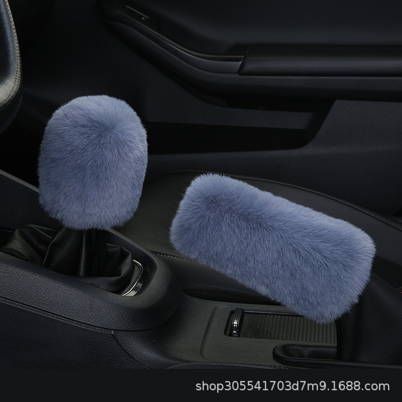 새로운 크로스 보더 플러시 핸들 커버 모조 토끼 모피 자동차 핸들 커버 탄성 크로스 보더 핸드 브레이크 커버 3 종 세트