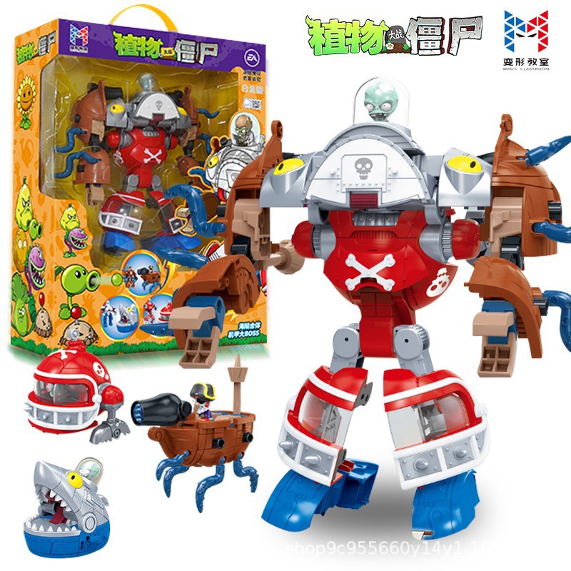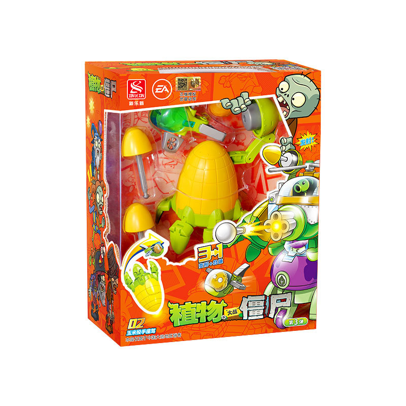 새로운 식물 대 좀비 원격 발사 전사 옥수수 대포 세트 변신 로봇 소년 선물스토어 가기