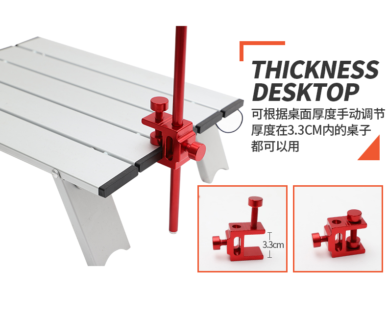 2用款:多一个地钉,拧上地钉后既可以固定在桌子上也可以直接插在地上。