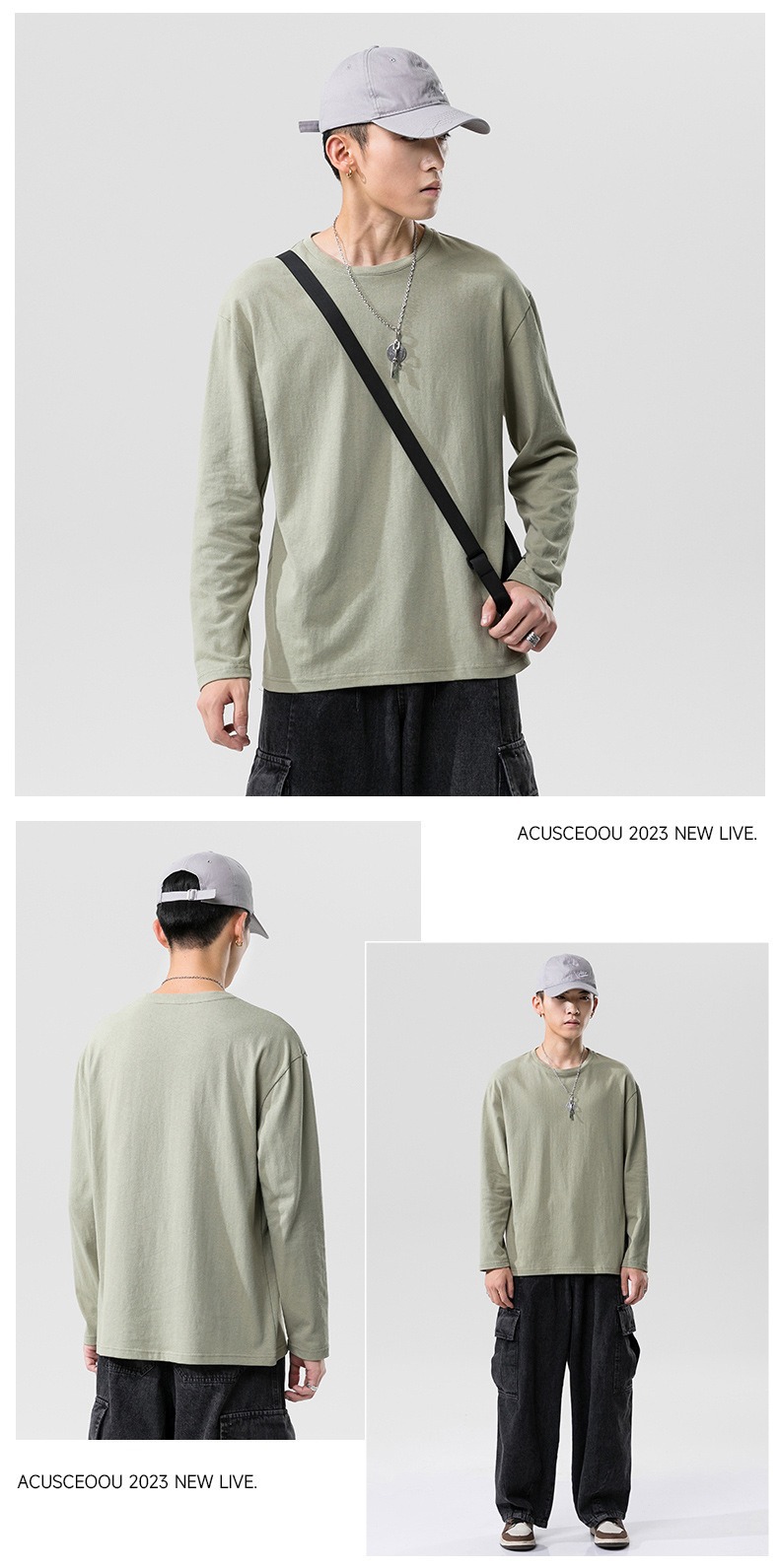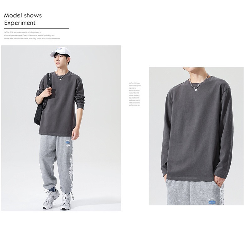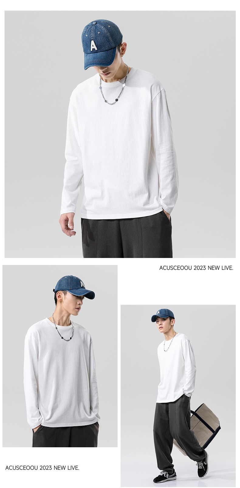 NASA 조인트 코튼 긴팔 티셔츠 남자 2024 봄과 가을 피부 친화적인베이스 티셔츠, 솔리드 컬러 루즈 탑스토어 가기