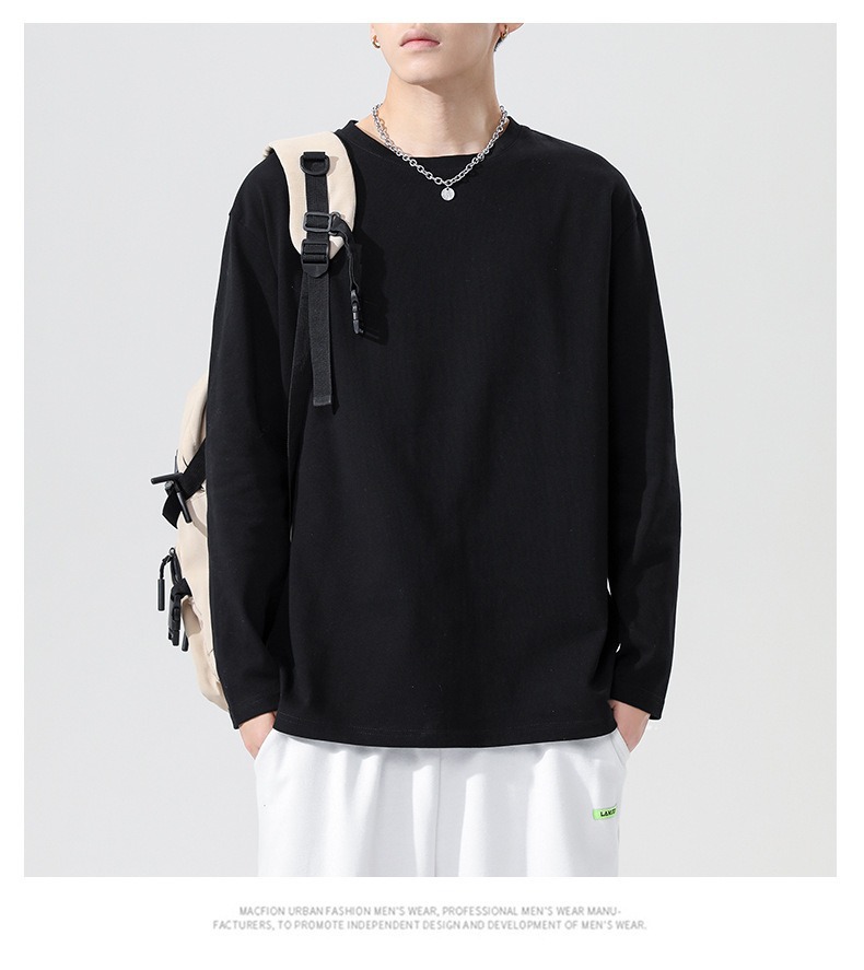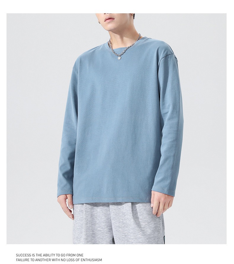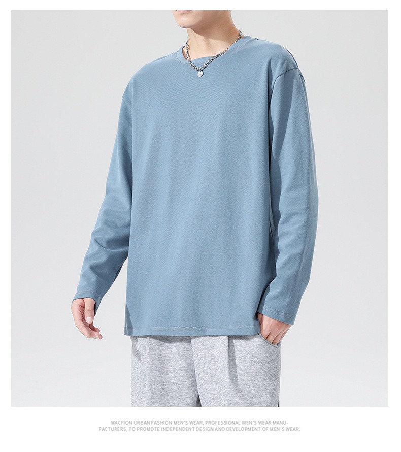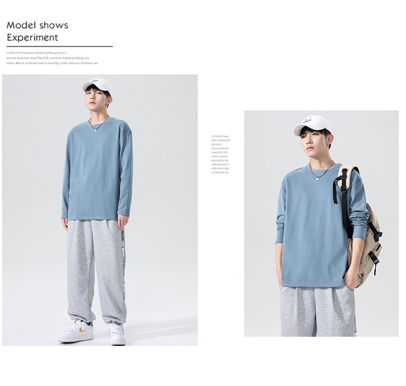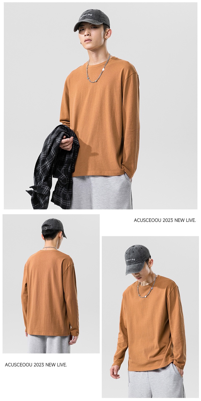 NASA 조인트 코튼 긴팔 티셔츠 남자 2024 봄과 가을 피부 친화적인베이스 티셔츠, 솔리드 컬러 루즈 탑스토어 가기