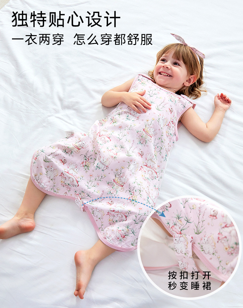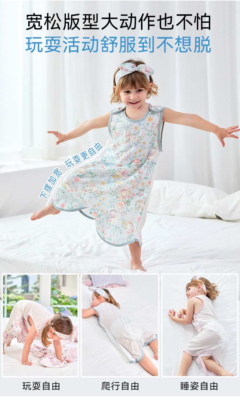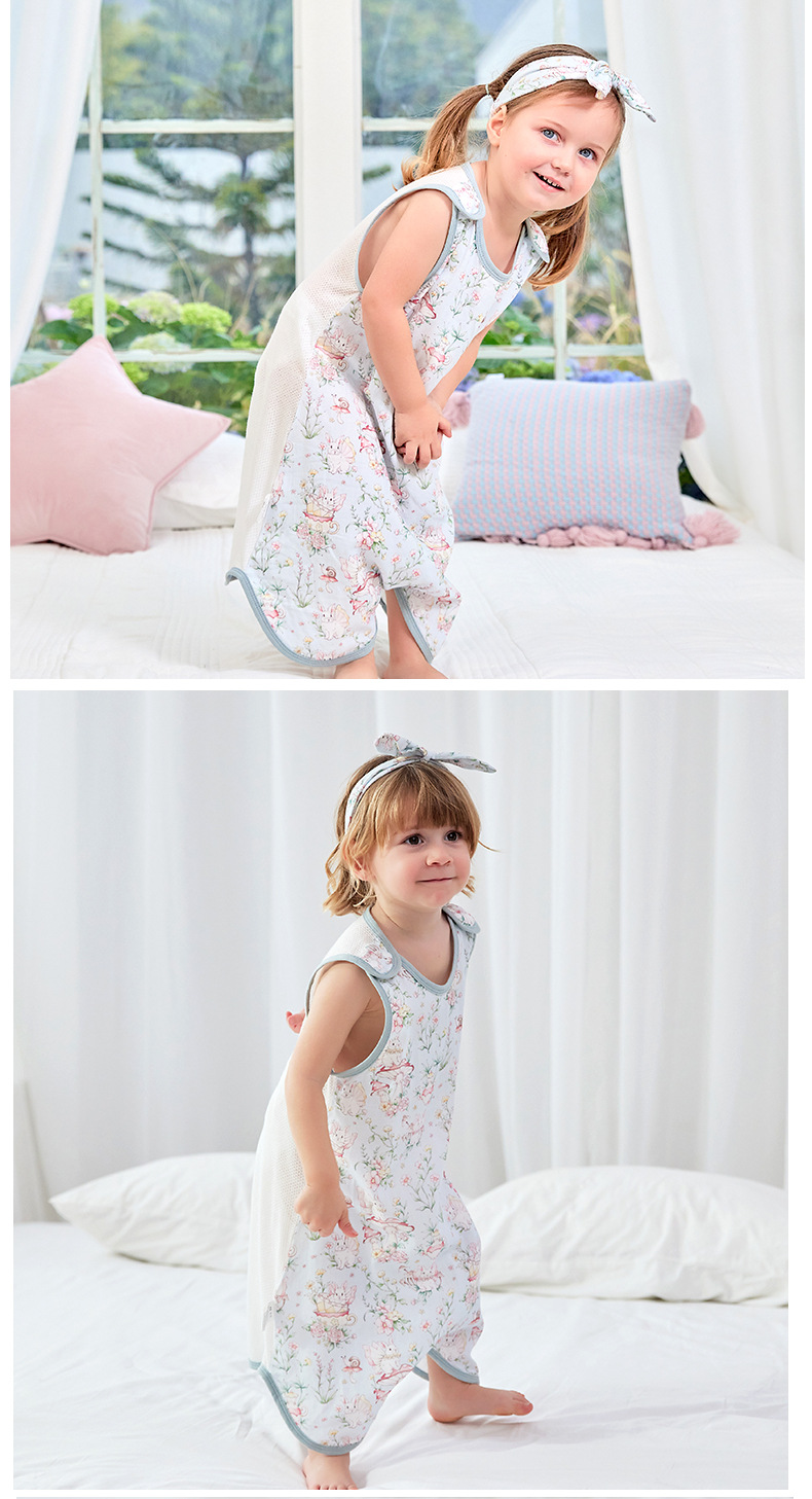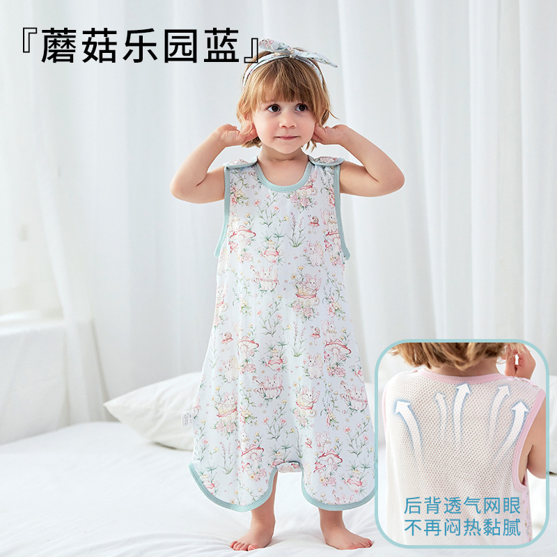 스플릿 다리가있는 아기의 침낭 여름 얇은 킥 방지 이불 항균 면 거즈 어린이 조끼 민소매 잠옷스토어 가기
