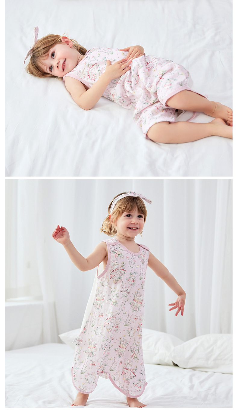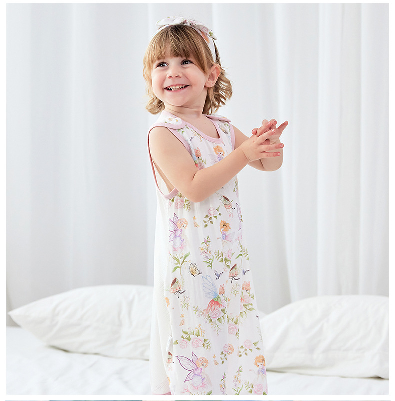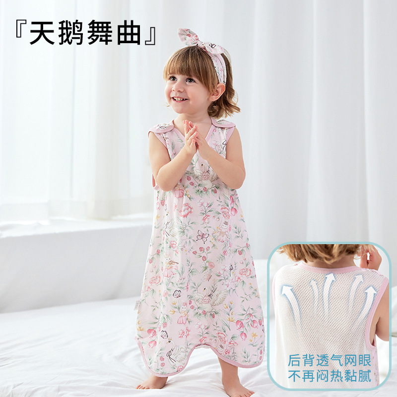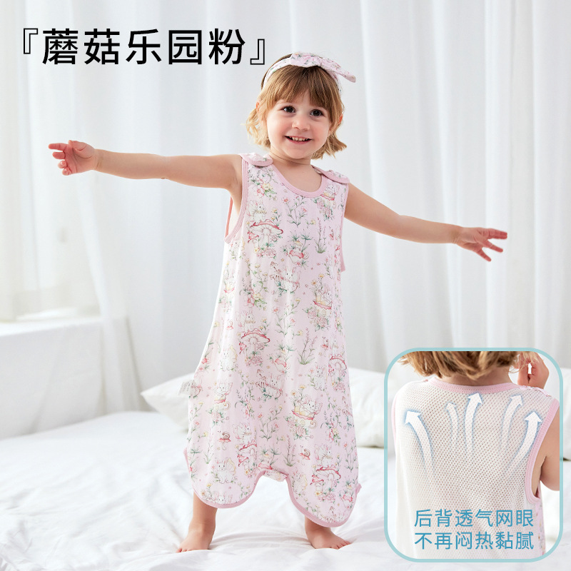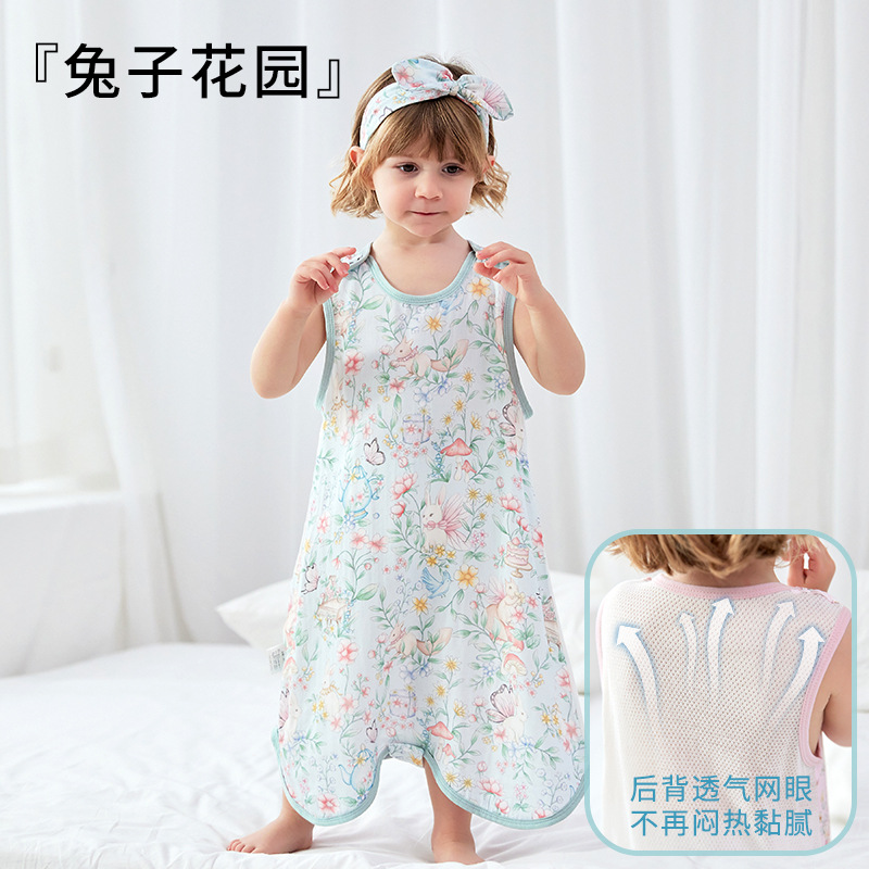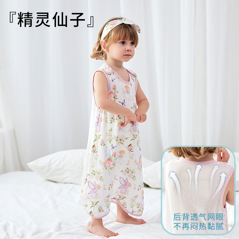 스플릿 다리가있는 아기의 침낭 여름 얇은 킥 방지 이불 항균 면 거즈 어린이 조끼 민소매 잠옷스토어 가기