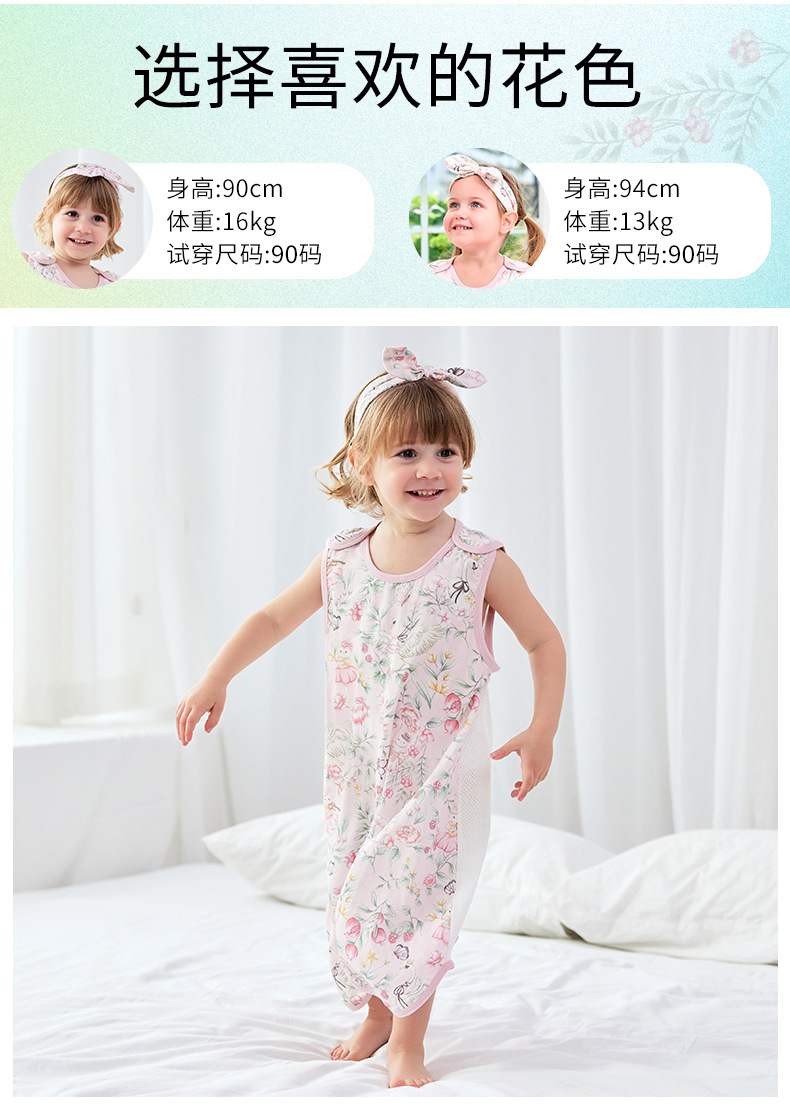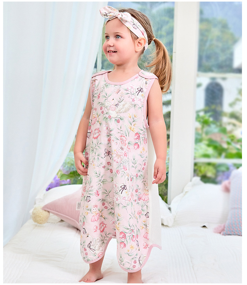 스플릿 다리가있는 아기의 침낭 여름 얇은 킥 방지 이불 항균 면 거즈 어린이 조끼 민소매 잠옷