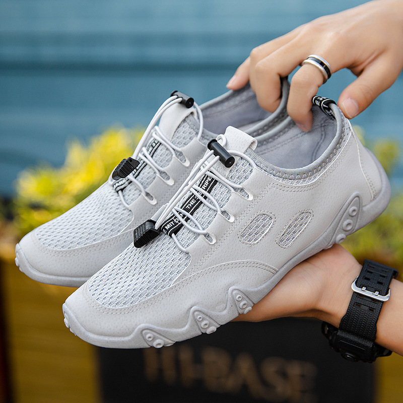 통기성 스포츠 메쉬 신발 남성 신발 라운드 발가락 메쉬 캐주얼 야외 등산 웨딩 플랫 힐 추적 신발 속건스토어 가기