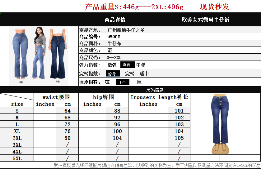 공장 직접 판매 2025 유럽과 미국의 인기 여성 청바지 여성 슬림 하이 웨이스트 엉덩이 플레어 바지 재고 있음 도매스토어 가기