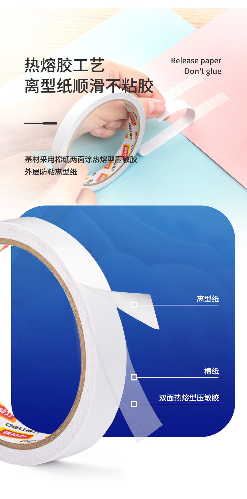 델리 30400 양면 접착 면 종이 테이프 투명 고점도 고정 핫멜트 접착 학생 홍보란 양면 접착
