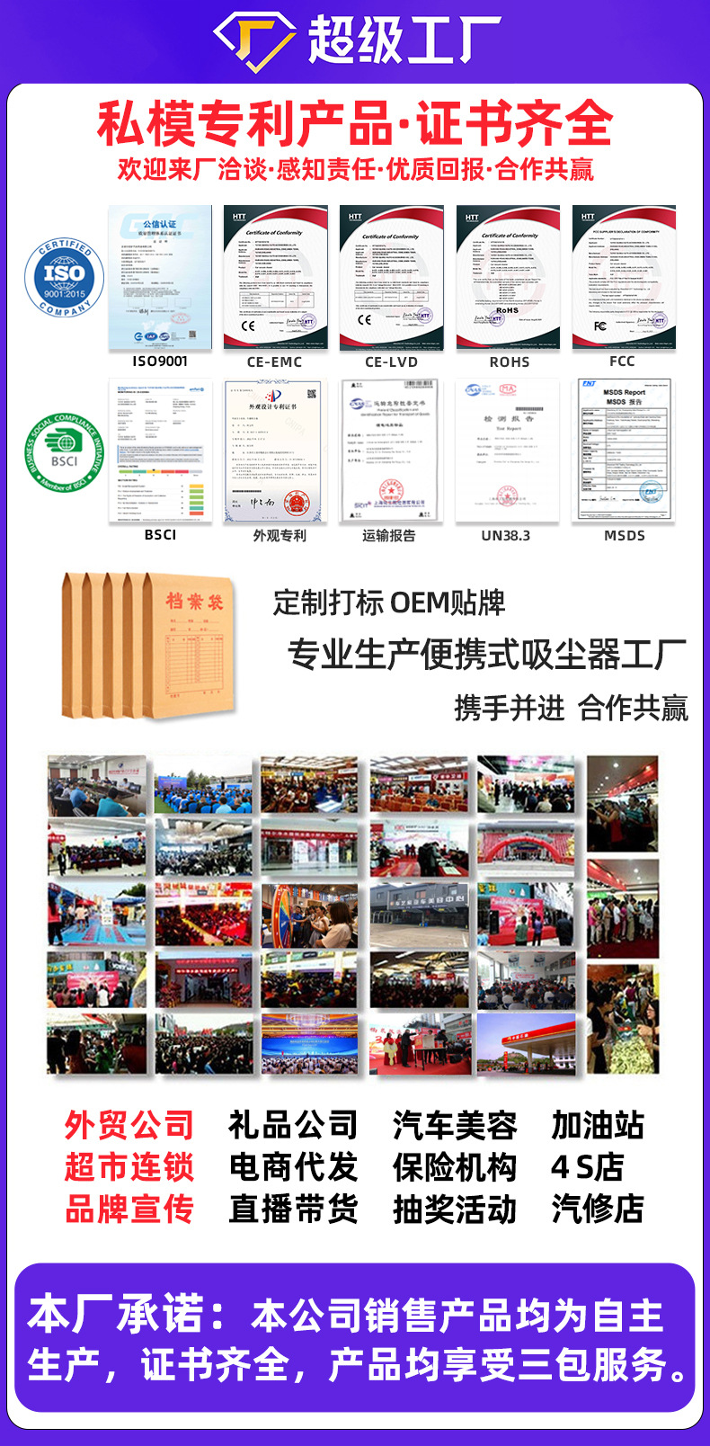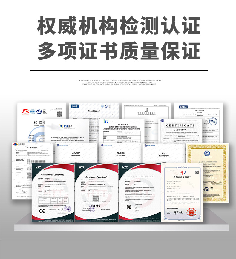 证书齐全:CE证书、ROHS证书、FCC证书、质检报告、MSDS、UN38.3、运输报告等