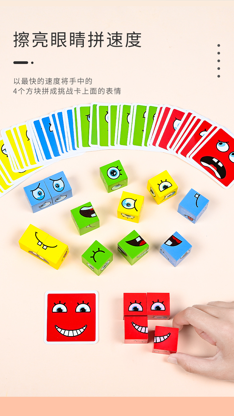 어린이 나무 표정 얼굴 바꾸기 루빅스 큐브 퍼즐 부모-자식 대화 형 데스크탑 게임 조기 교육 교육 완구 도매