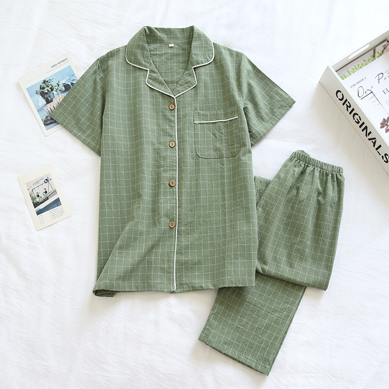 여름 새로운 올 코튼 워싱 코튼 커플 반팔 바지 홈 의류 모든 코튼 얇은 남성 및 여성 잠옷 커버스토어 가기