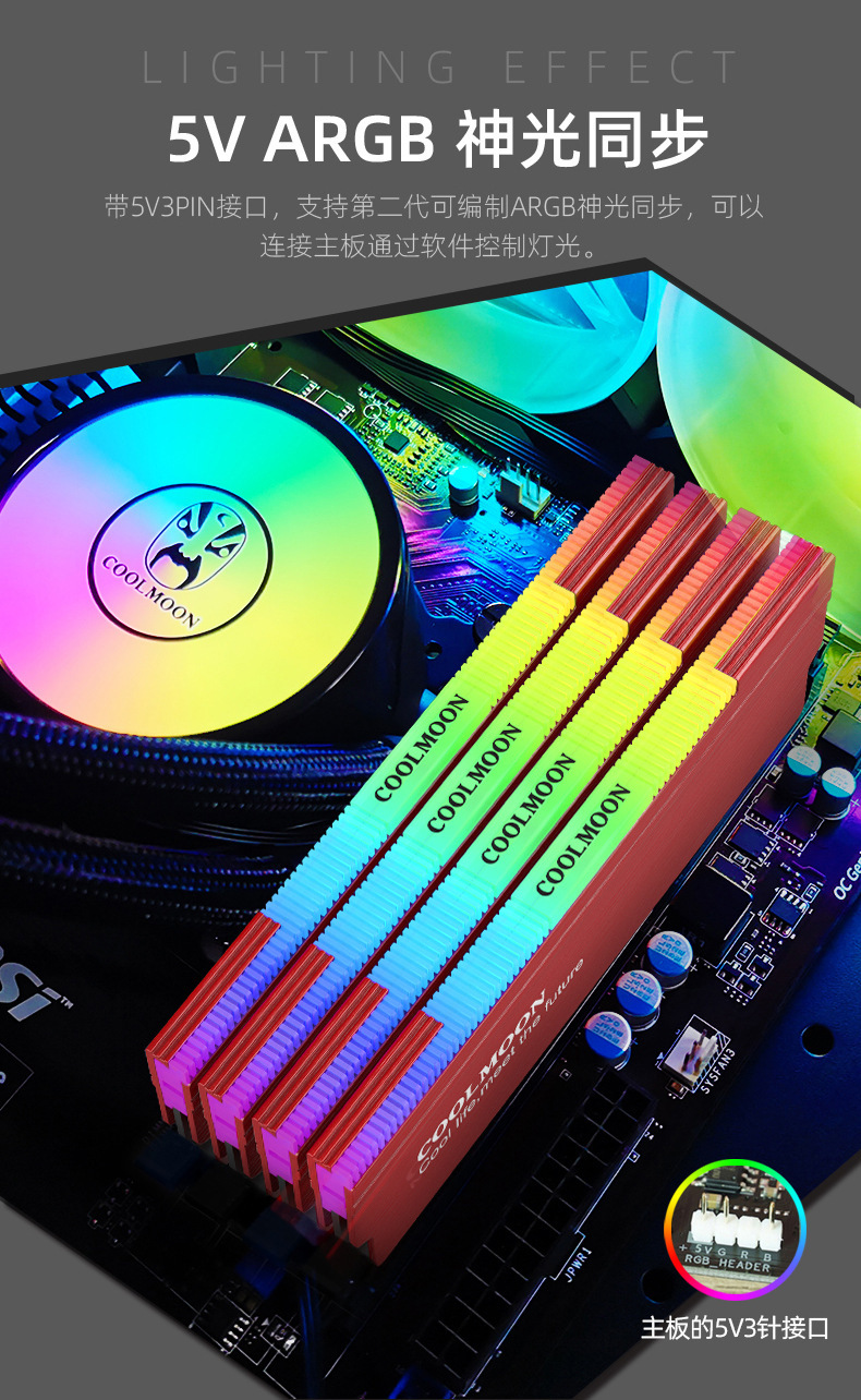 COOLMOON 메모리 조끼 ARGB 데스크탑 컴퓨터 메모리 모듈 방열판 Shenguang 동기화 5v 메모리 쉘스토어 가기