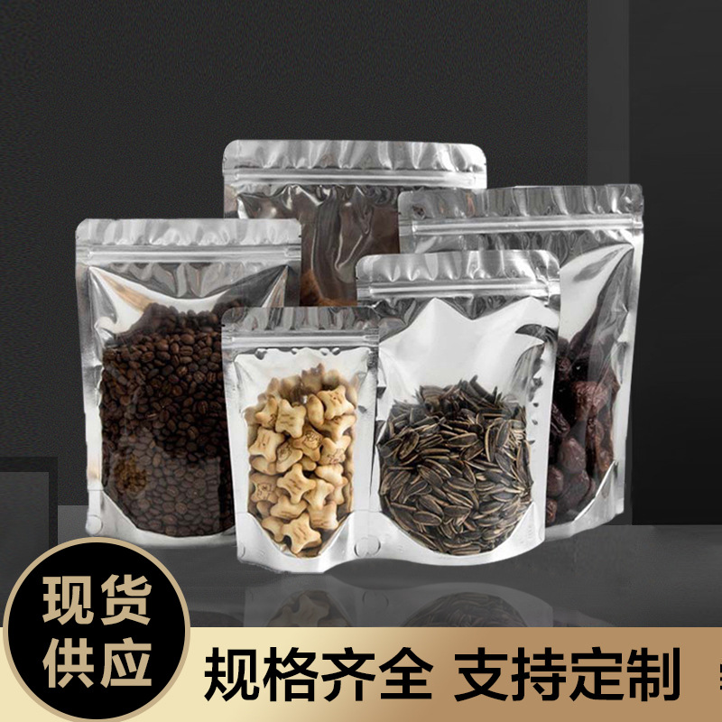 양음 알루미늄 호일 스탠드 업 백 양음 알루미늄 도금 지퍼 반투명 스낵 차 식품 포장 백 자체 밀봉 및 두꺼운