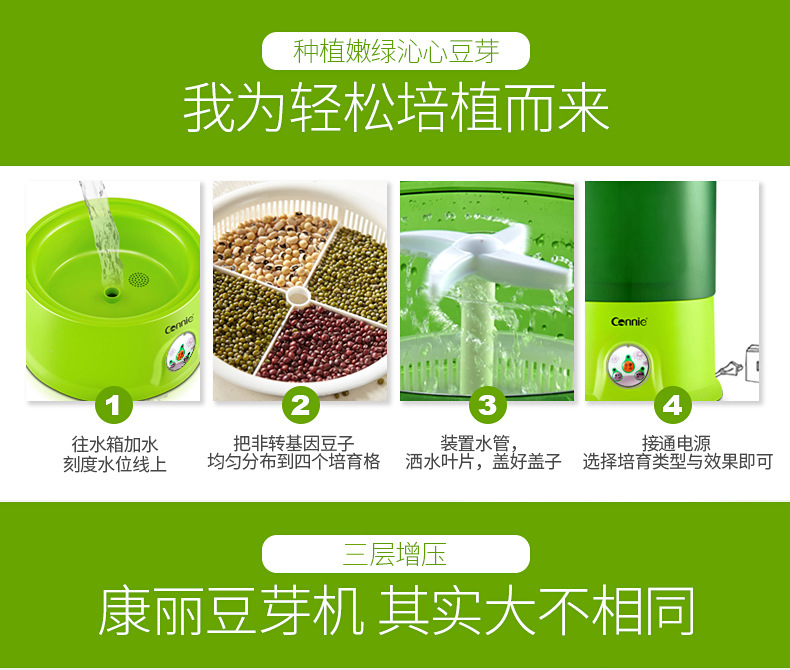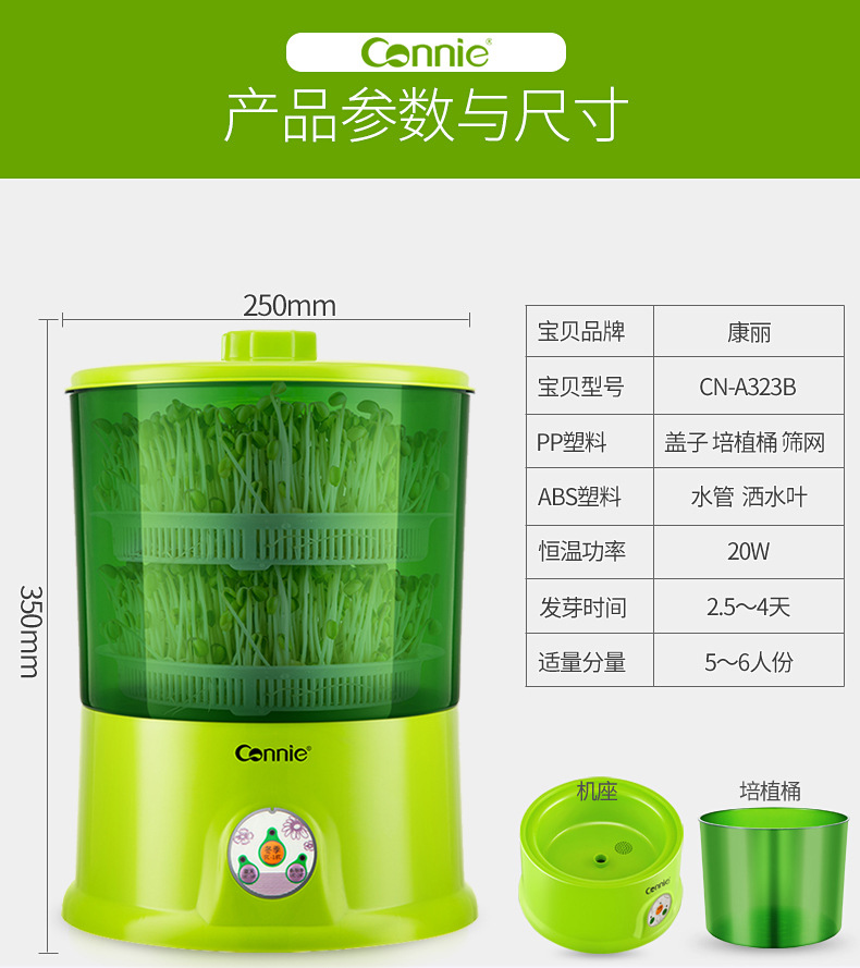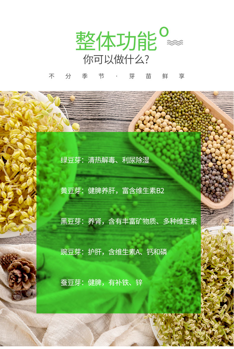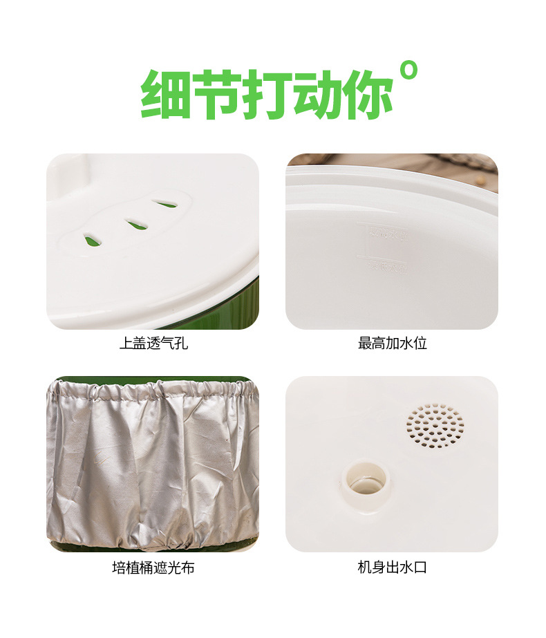 简单说明:绿色:自动款,一年四季种植豆芽!操作简单。