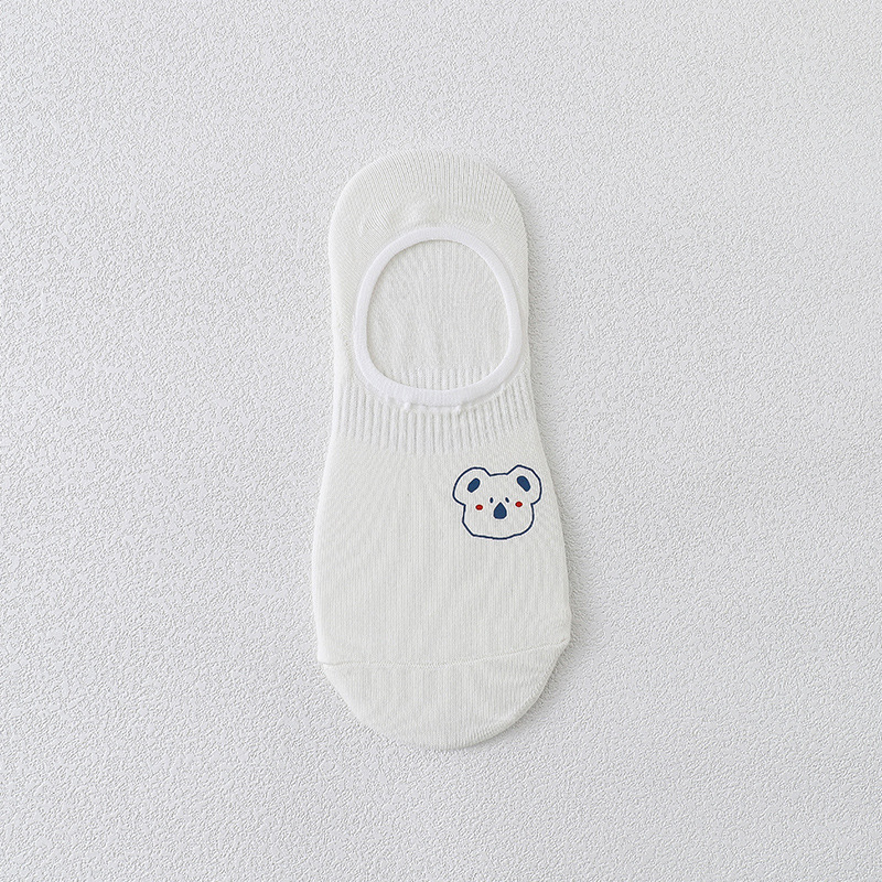 봄과 여름 만화 핫 스탬핑 동물 흰색 면 보이지 않는 양말 아카데미 스타일 여성용 얕은 입 양말 스포츠 학생 양말