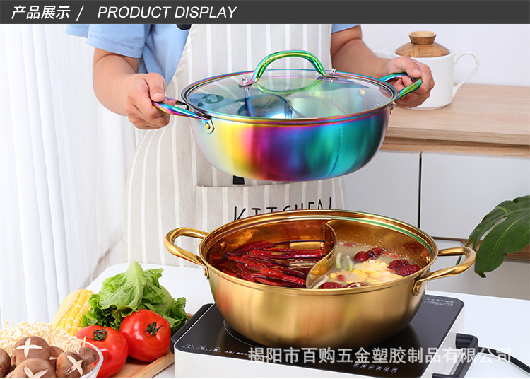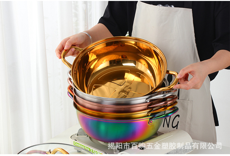 304 스테인레스 티타늄 도금 컬러 만다린 오리 냄비 스테인레스 스틸 투명 수프 냄비 뚜껑 브러쉬 양고기 만다린 오리 냄비 다용도 수프 냄비스토어 가기
