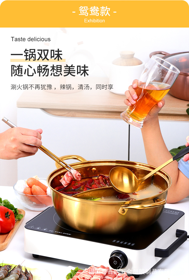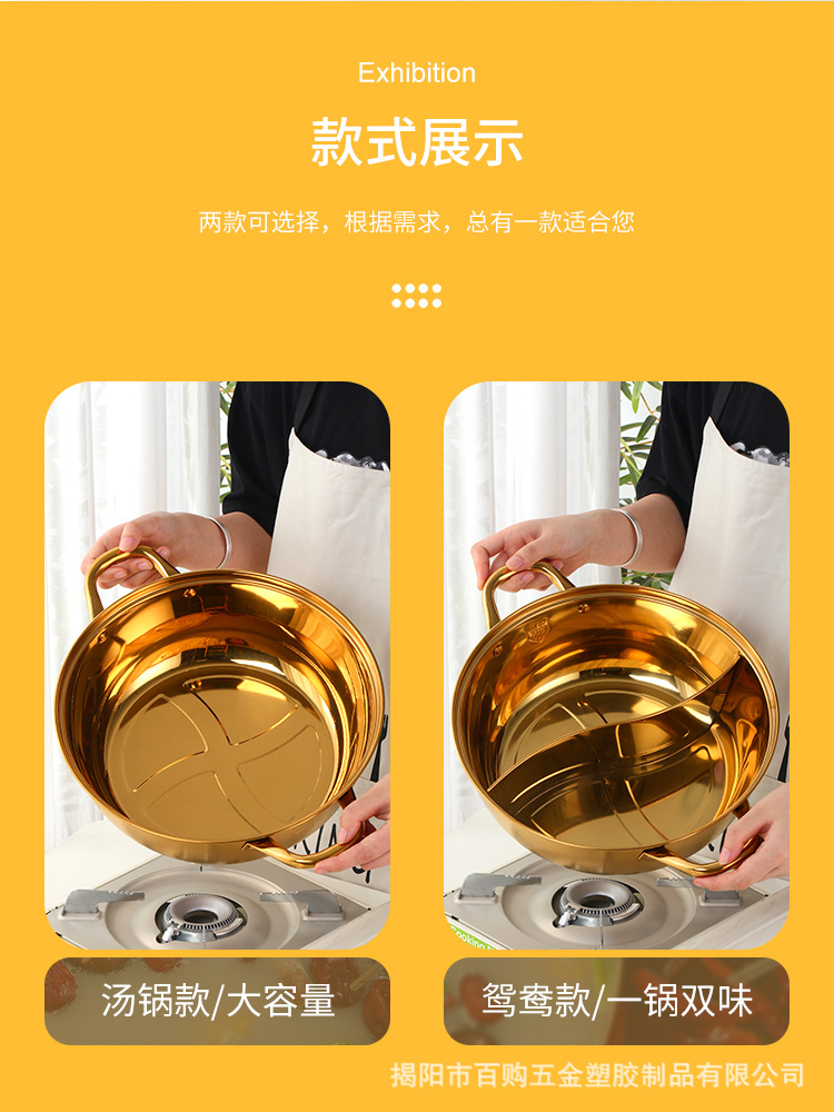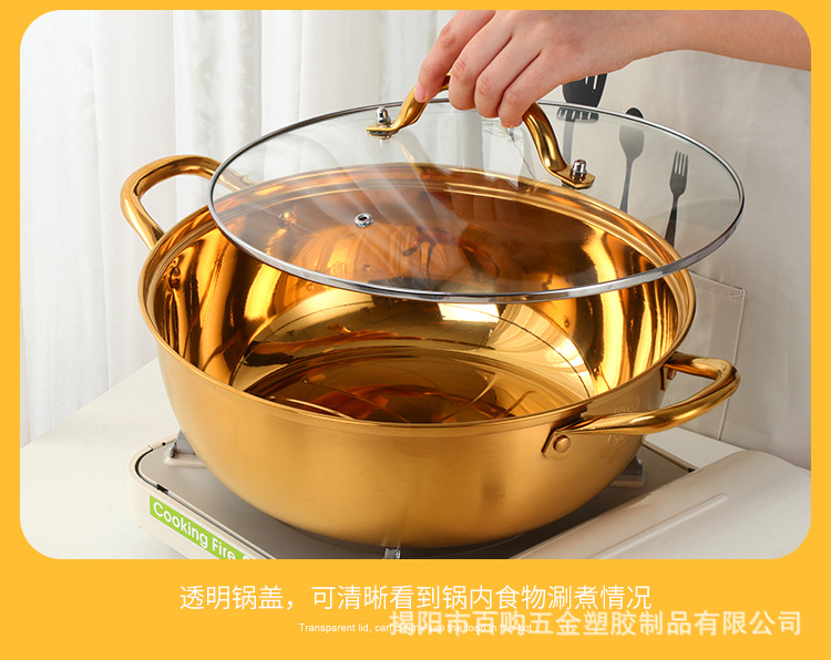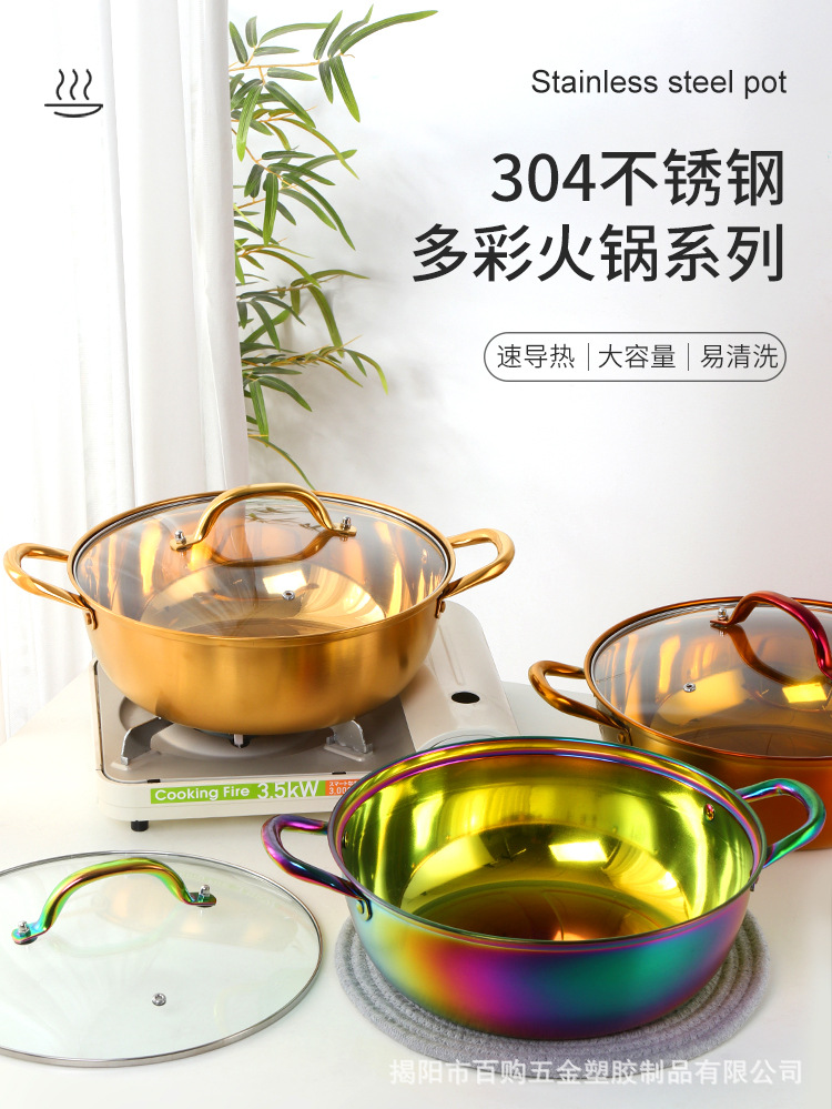 304 스테인레스 티타늄 도금 컬러 만다린 오리 냄비 스테인레스 스틸 투명 수프 냄비 뚜껑 브러쉬 양고기 만다린 오리 냄비 다용도 수프 냄비