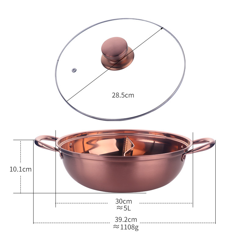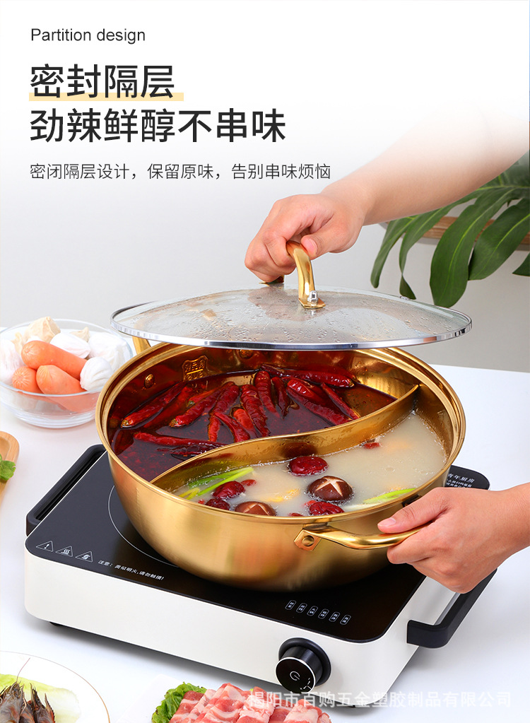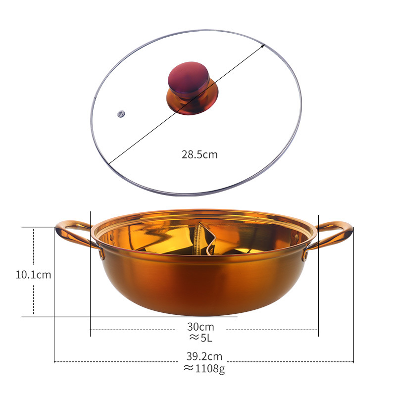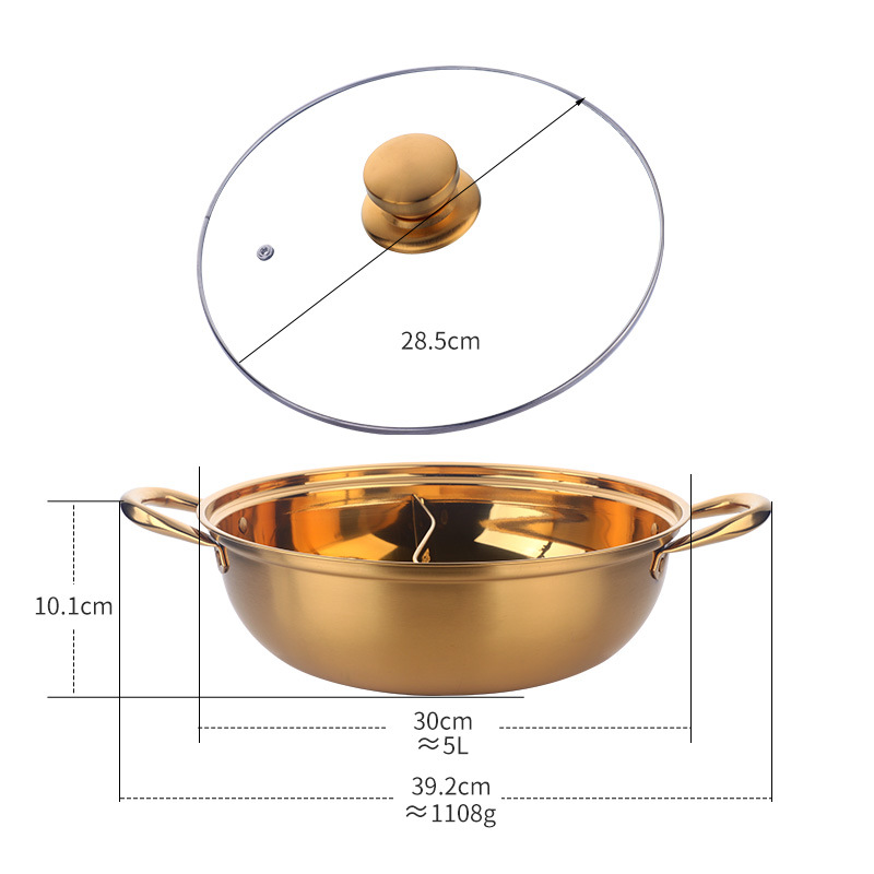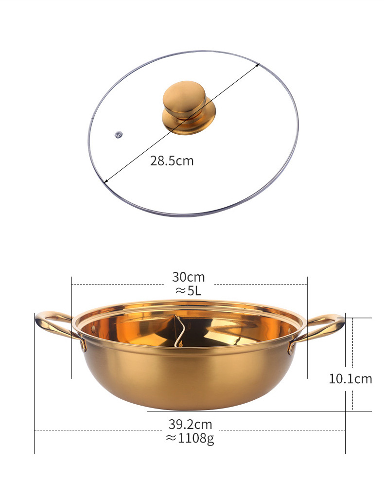 304 스테인레스 티타늄 도금 컬러 만다린 오리 냄비 스테인레스 스틸 투명 수프 냄비 뚜껑 브러쉬 양고기 만다린 오리 냄비 다용도 수프 냄비