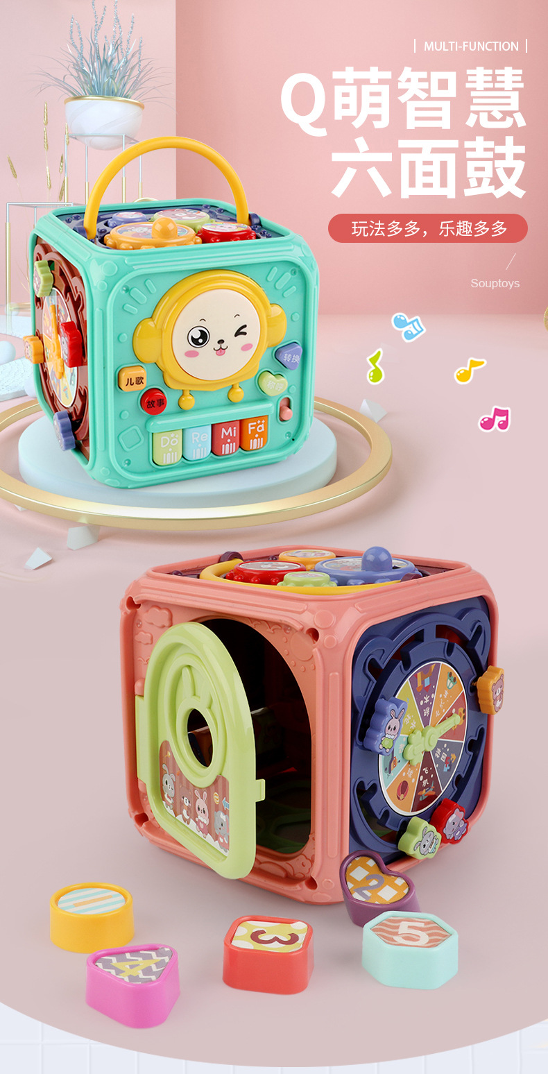 어린이 육면체 핸드비트 드럼 1 세 아기 장난감 스마트 큐브 6 월 아기 비트 드럼 빛나는 음악 6 면 드럼스토어 가기