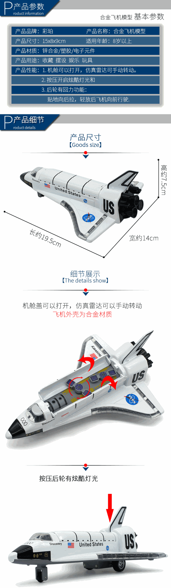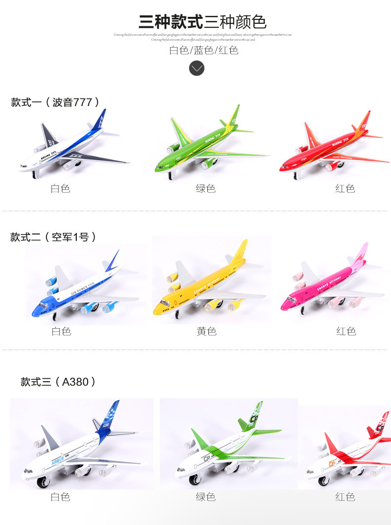 컬러 Perot 합금 우주 왕복선 모델 Airbus A380 Boeing 777 C919 Acousto-optic 장난감 장식품스토어 가기