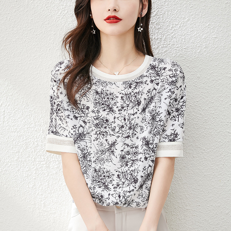 쉬폰 셔츠 티셔츠 여성용 중간 소매 여름 여성용 2021 년 새로운 루즈한 스몰 셔츠 중국식 잉크 프린트 탑스토어 가기