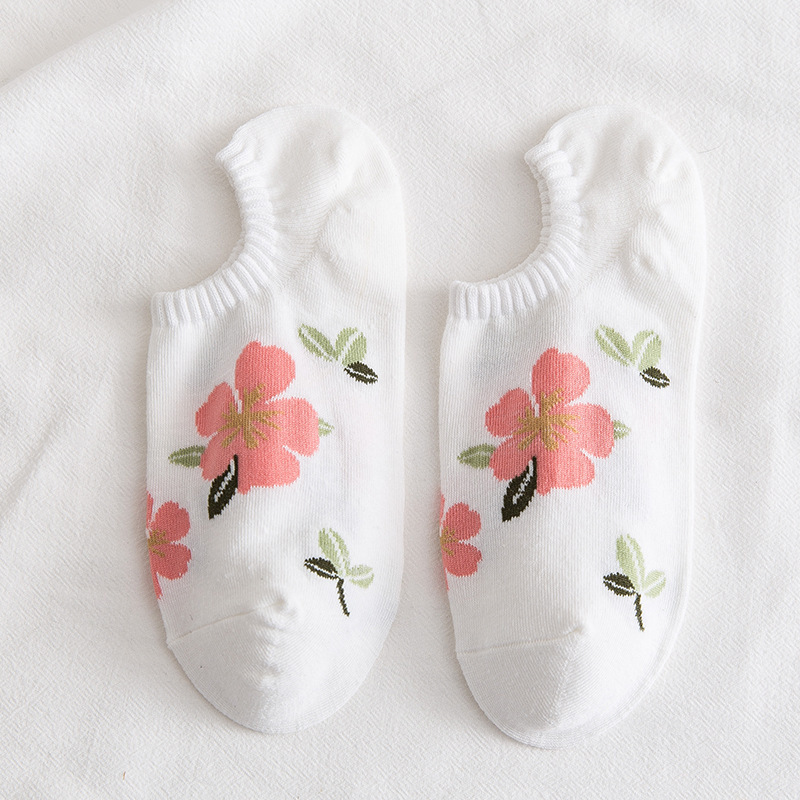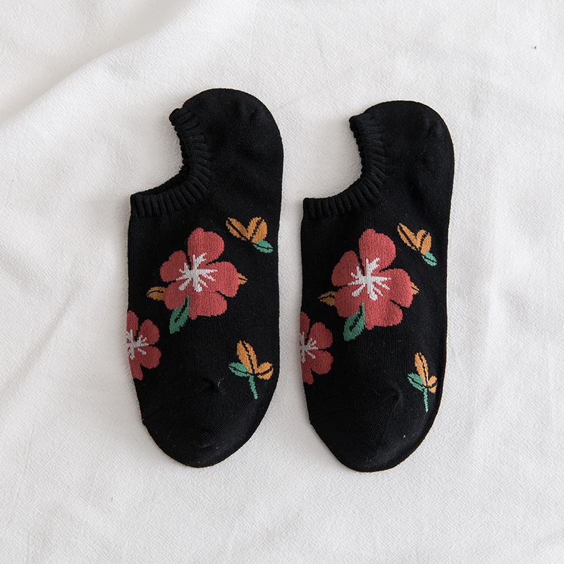 2021 새로운 꽃 무늬 스트레이트 양말 어린이 바람 성격 얕은 양말 만화 패턴 숙녀 보트 양말 도매스토어 가기