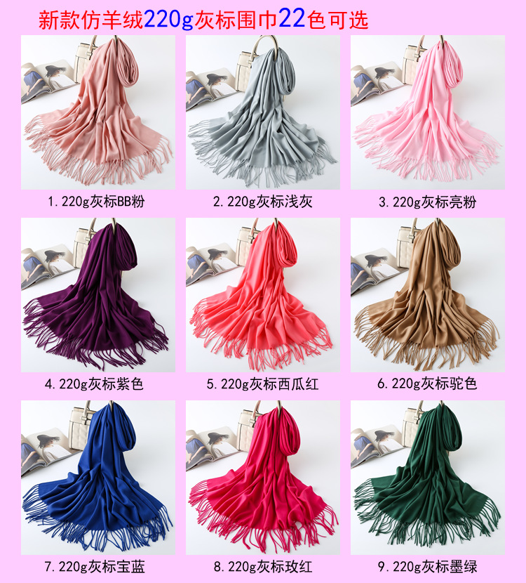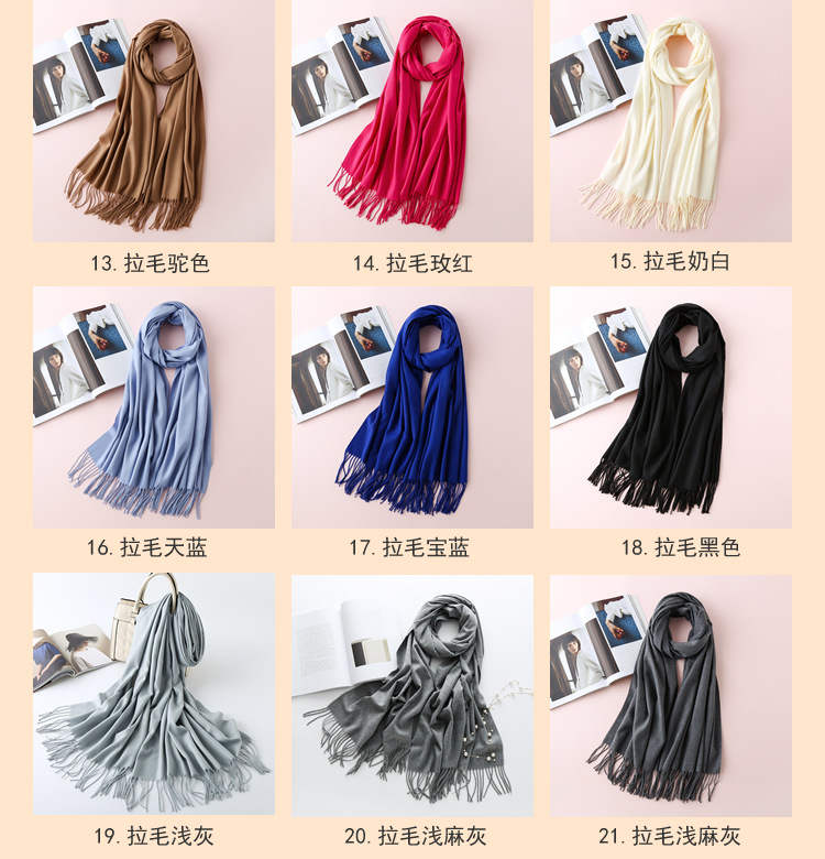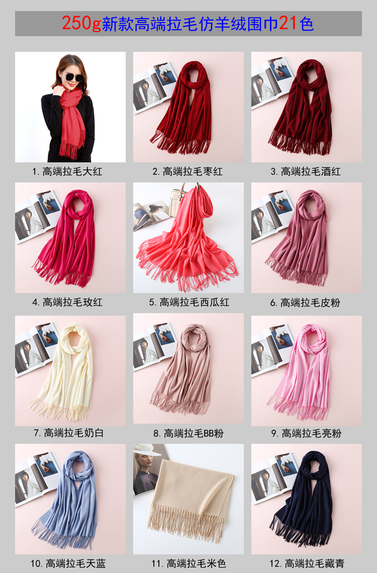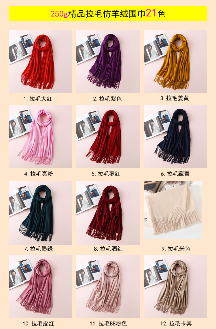 6가지 단색 모조 캐시미어 스카프 가을 겨울 여성용 단색 보온 스카프 숄 빨간색 스카프 도매 및 배송스토어 가기