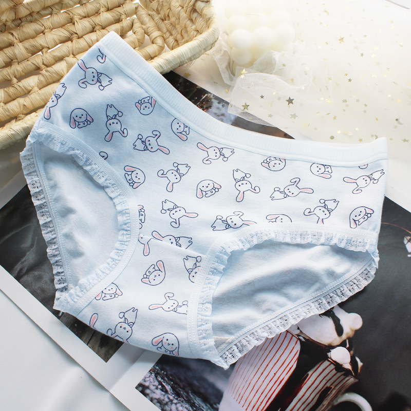 봄과 여름 달콤한 일본식 신선한 딸기 귀여운 토끼 소녀의 순면 속옷 여성용 순면 가랑이 중간 허리 학생 팬티스토어 가기