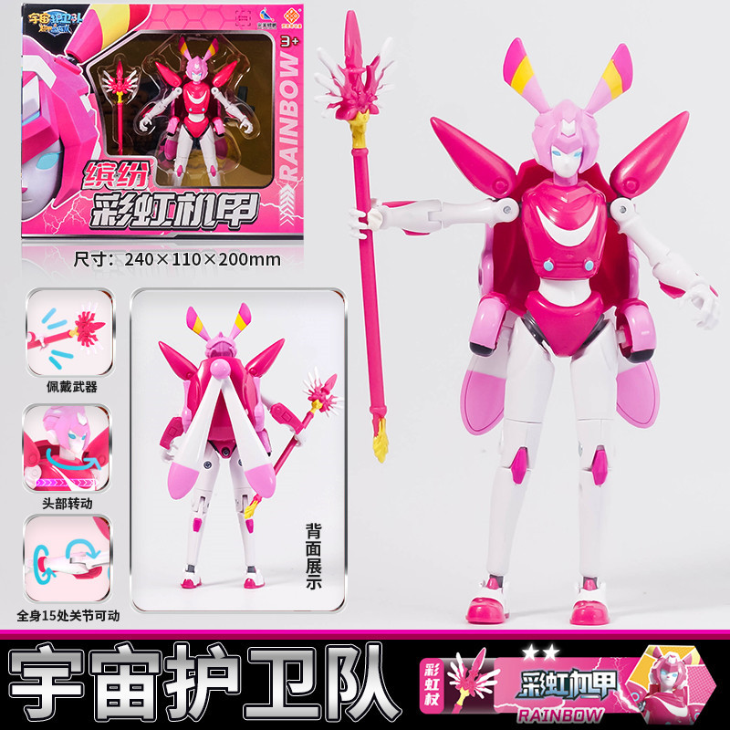 코스믹 가드 장난감 레인보우 에너지 유성 번개 폭풍 힘 소녀 입상 2 풀 세트 변형 기관차 4